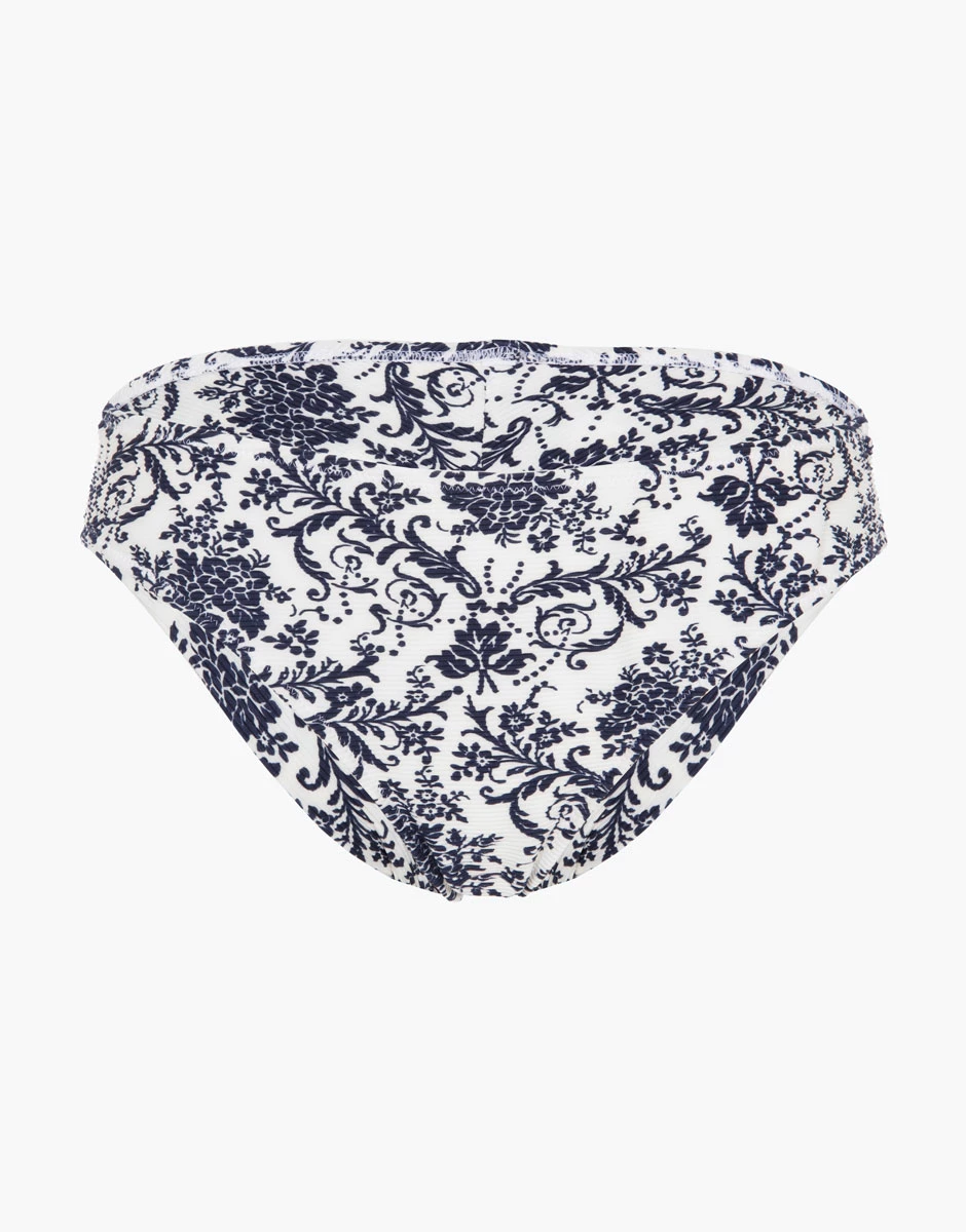 Ce slip brésilien en microfibre avec une structure côtelée mettra parfaitement en valeur votre corps. Il épousera vos formes et s’adaptera à chacun de vos mouvements, pour que vous vous sentiez à l’aise à tout moment. Son imprimé fleuri bleu et blanc vous apportera une touche de glamour et de féminité !