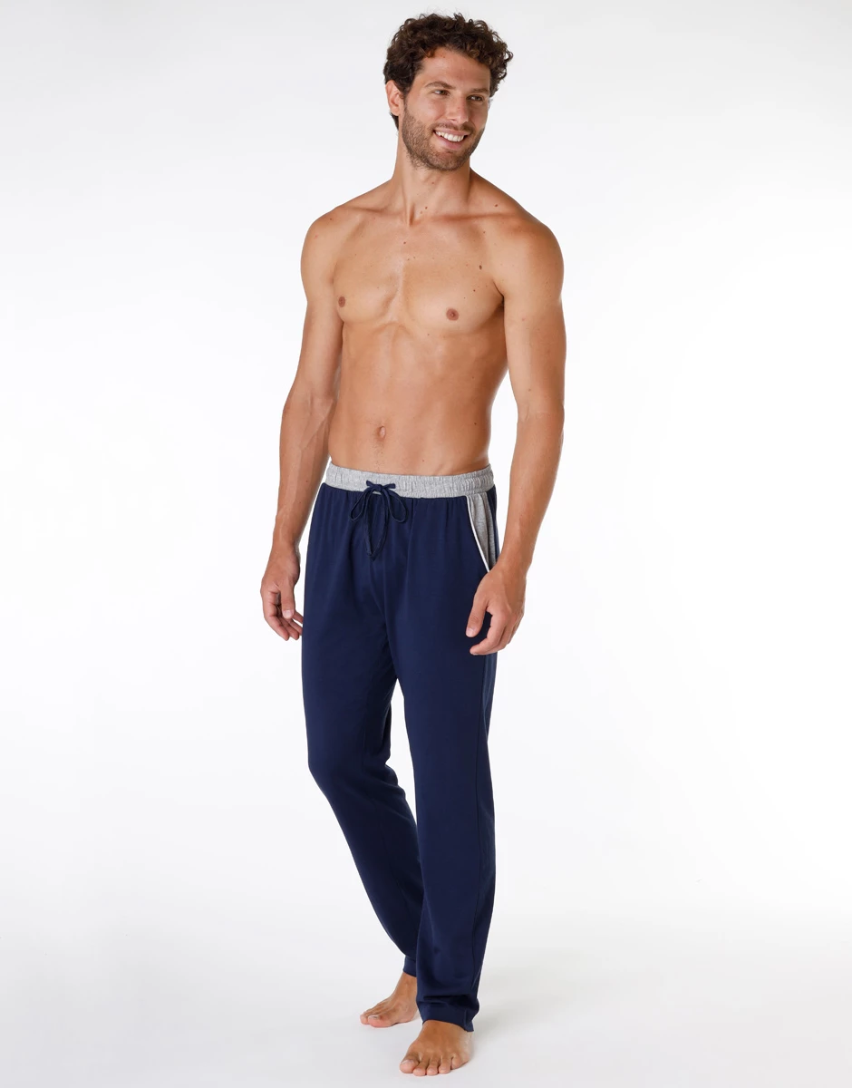 Bas de pyjama pour homme en jersey 100% coton, bleu marine