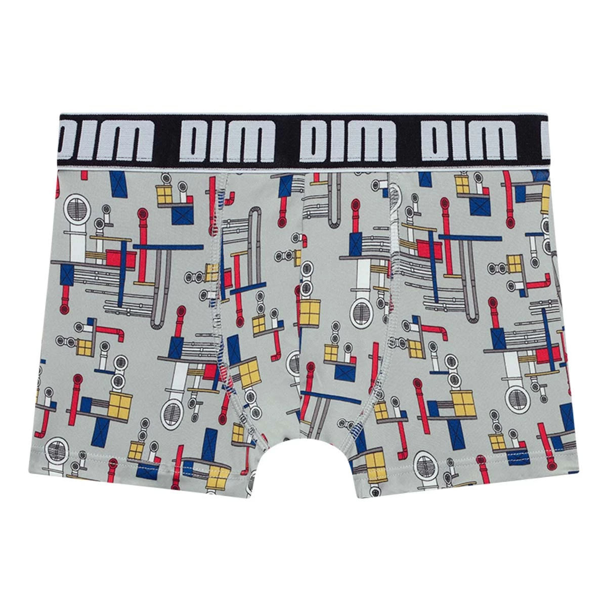 Votre ado aborde une allure de petit ingénieur avec notre boxer garçon en microfibre veloutée Gris Clair DIM Micro recouvert de motifs industriels très contemporains !