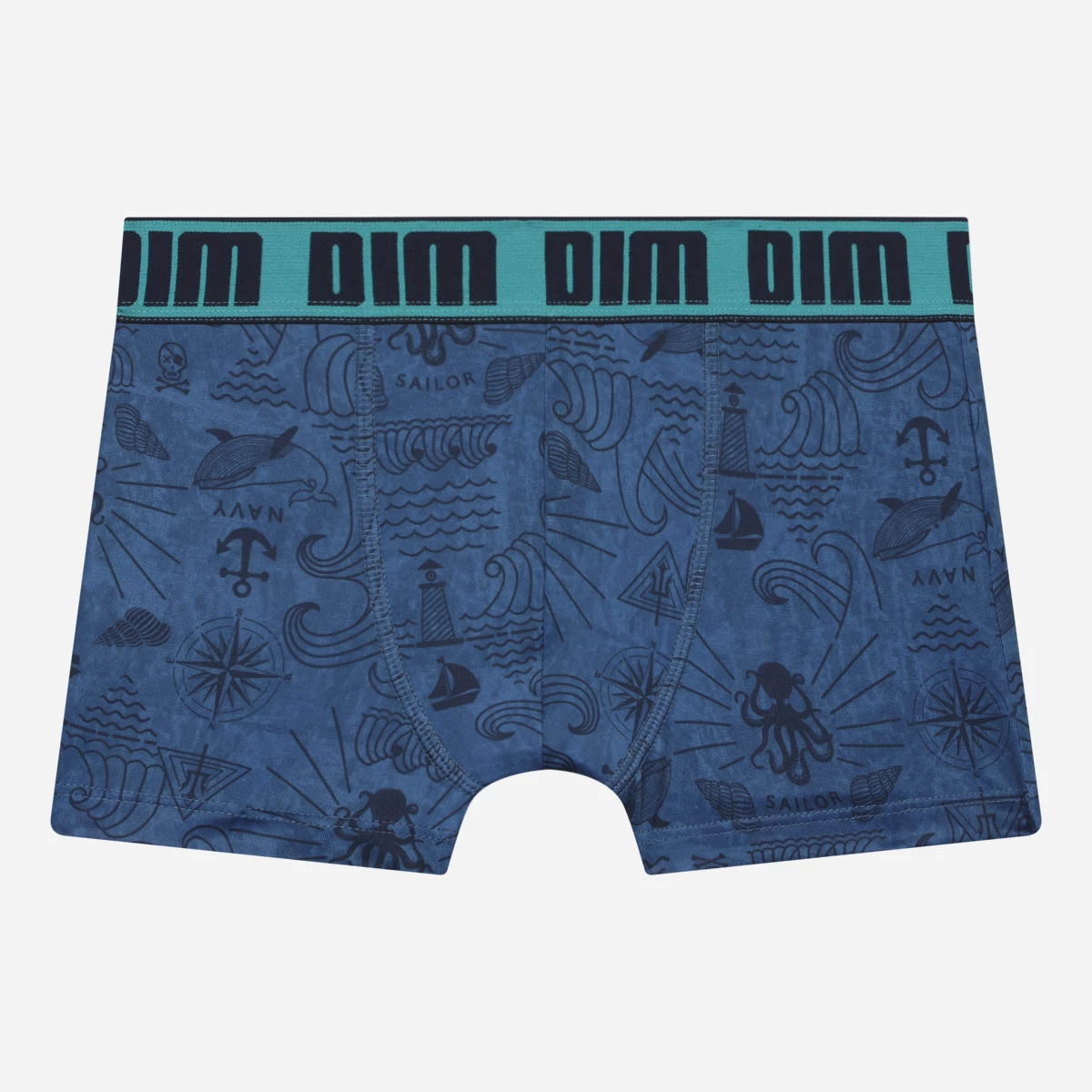 Le look marin s’empare de son boxer garçon en microfibre Bleu Dim à la ceinture contrastée et aux illustrations nautiques iconiques !