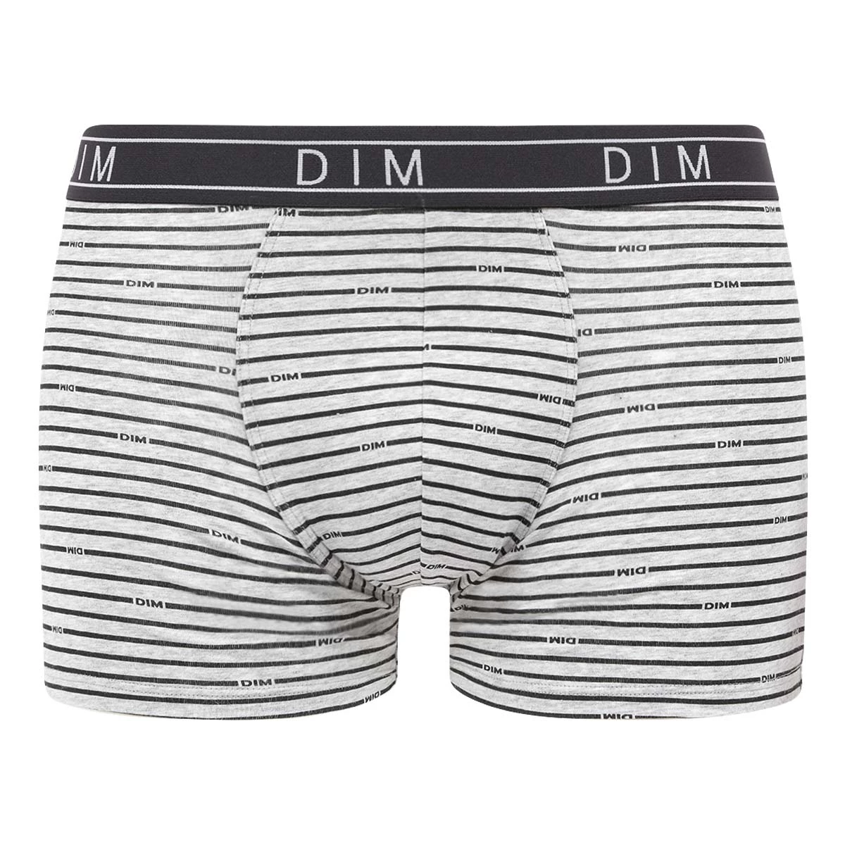 La logo mania s’invite sobrement sur votre lingerie avec notre boxer homme en coton stretch Gris Dim Fancy aux rayures iconiques et logo Dim streetwear !