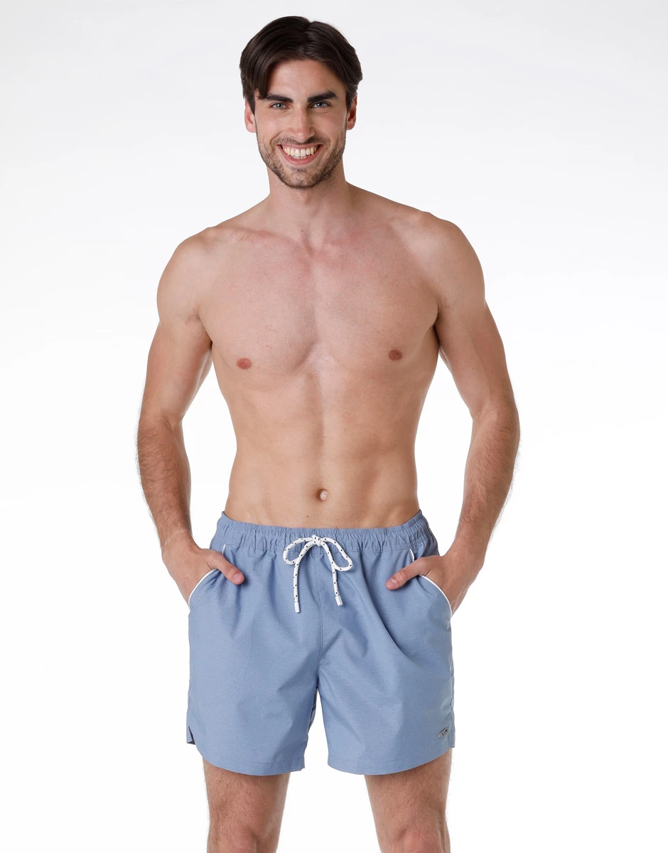 Caleçon d’une longueur de 40 cm en coton teint dans la masse, ce qui donne au vêtement un effet ondulé. Le bleu est un classique en matière de style, surtout lorsqu’il est associé à des couleurs contrastées, comme celles de la poche. La ceinture élastique permet au maillot de bain d’épouser parfaitement la forme du corps sans créer de gêne. Confort, praticité et style sont les trois piliers de ce maillot de bain pour homme !