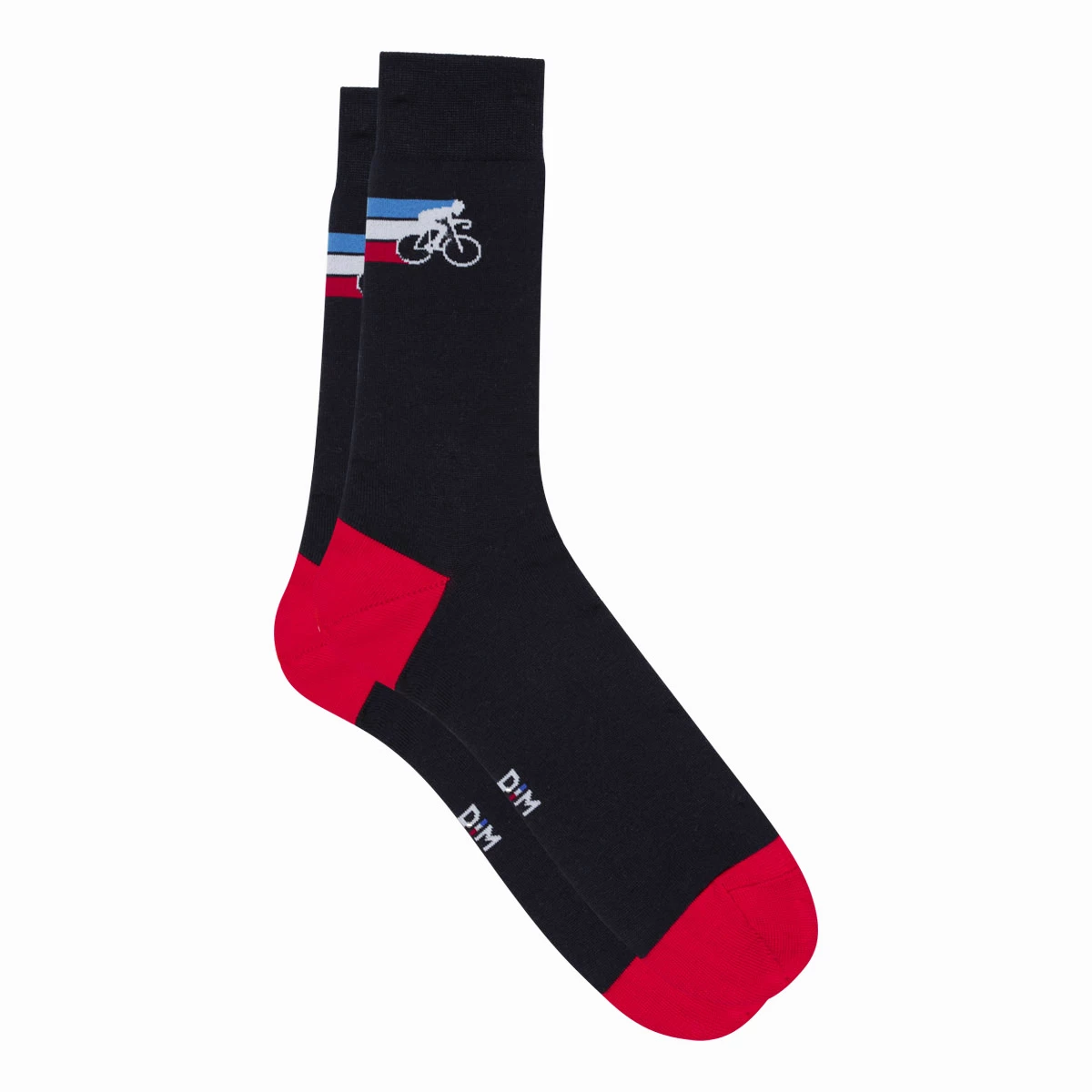 Place aux fans de cyclisme avec notre paire de chaussettes homme en coton Bleu Monsieur Dim à l’imprimé vélo très sporty-chic !