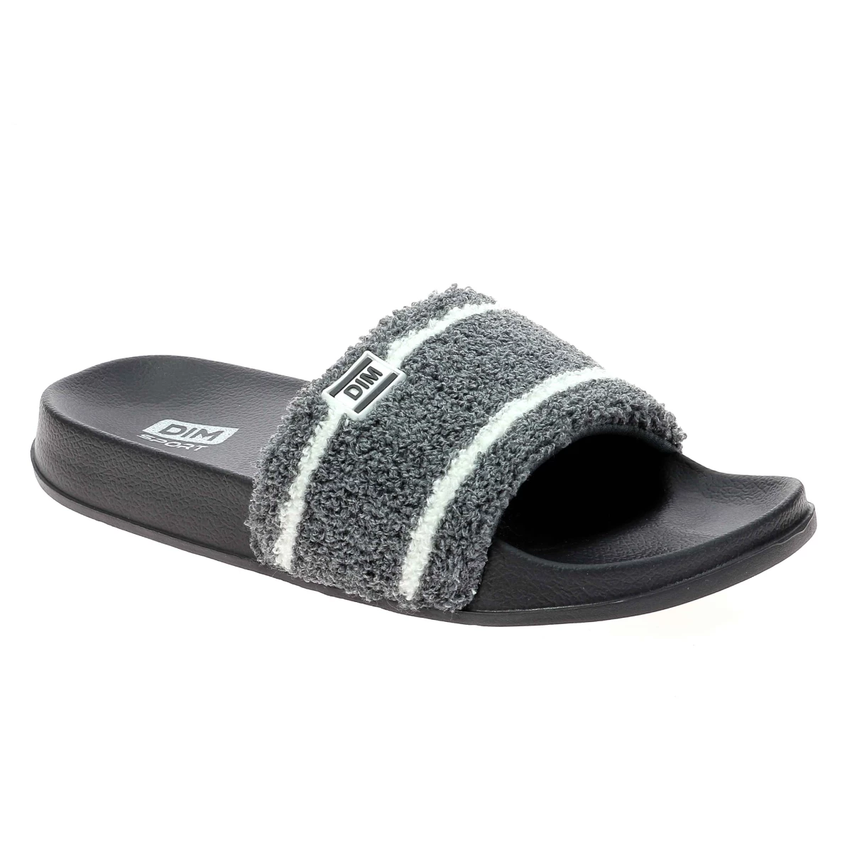 Impossible de résister face à cette paire de claquettes en revers moumoute gris-blanc pour femme Dim Sport !
