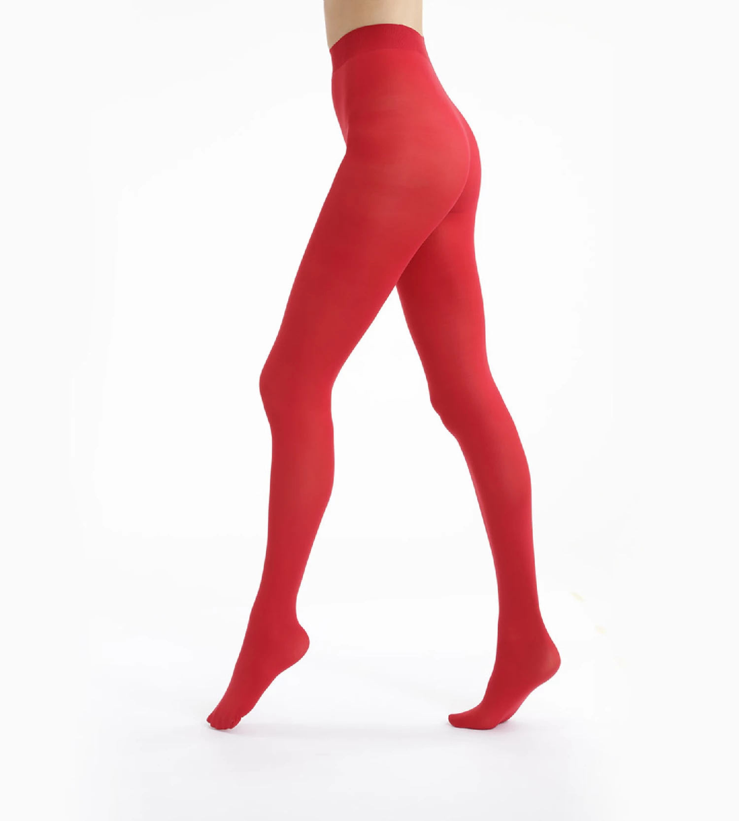 Les années 1970 sont de retour : il est temps de twister votre look et de sortir le grand jeu ! Le collant opaque coloris rouge intense est idéal pour s’offrir un look sorti tout droit des podiums !