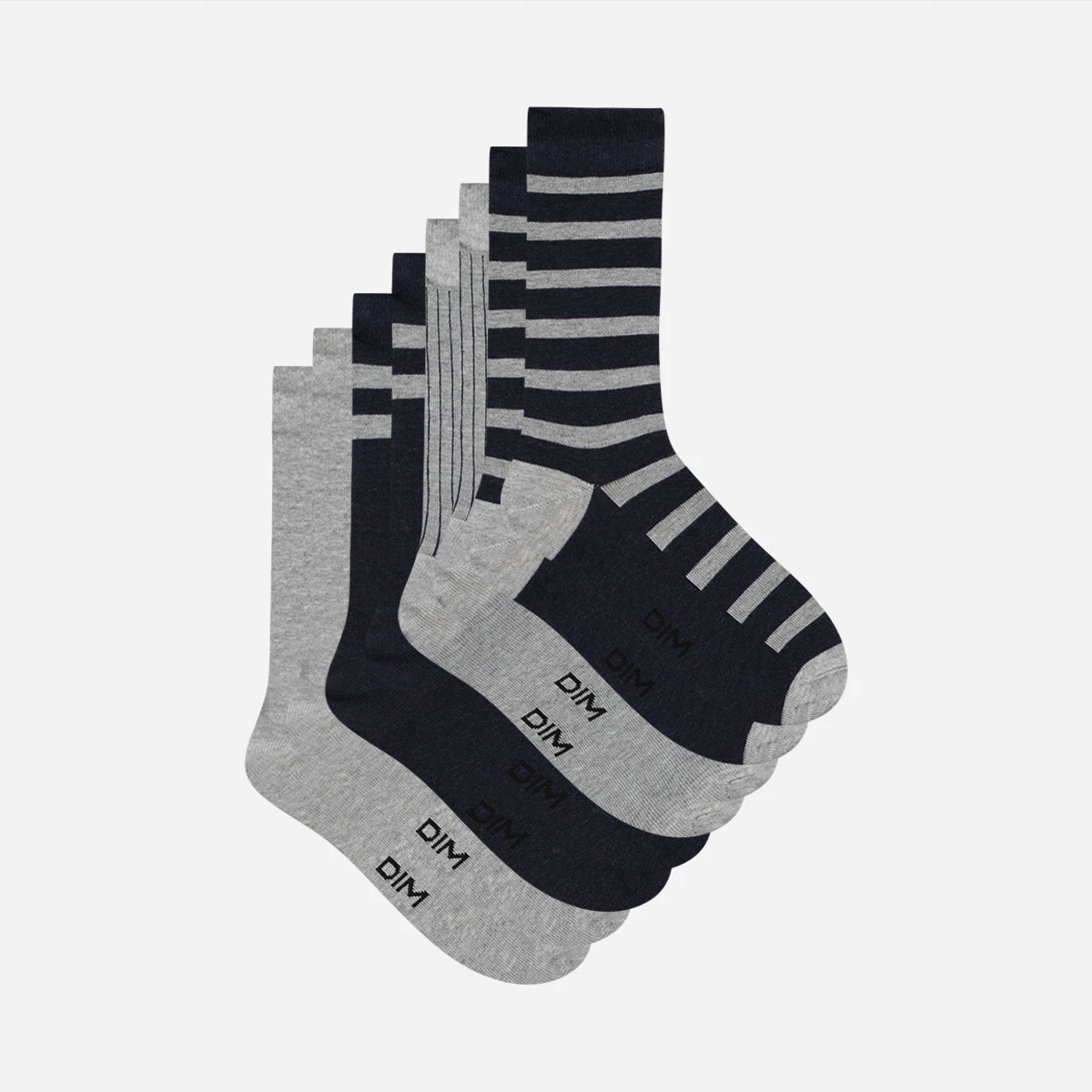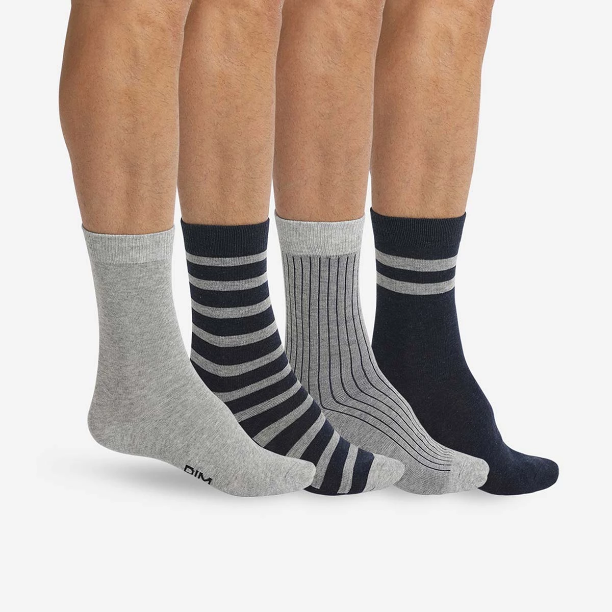 Rayées et lumineuses, choyez vos pieds avec le lot de 4 paires de chaussettes Gris Chiné et Jean Eco Dim !