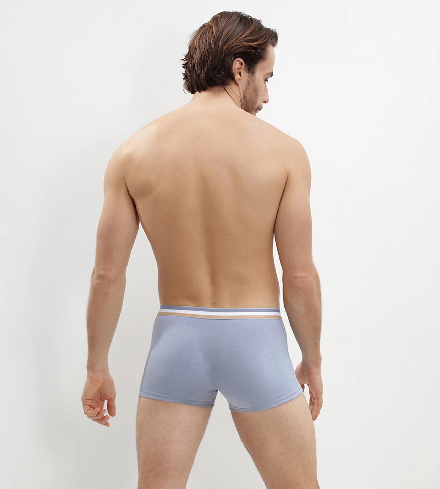On fond pour ce modèle de boxer homme aux coloris doux Bleu Denim foncé et Bleu Arctic polaire EcoDIM au corps uni en coton stretch enveloppant et cocooning ! Plus que du confort à petit prix, ce pack de lingerie homme EcoDIM vous garantit un style effortless, grâce à la ceinture tricolore beige, blanc, bleu très sport chic !