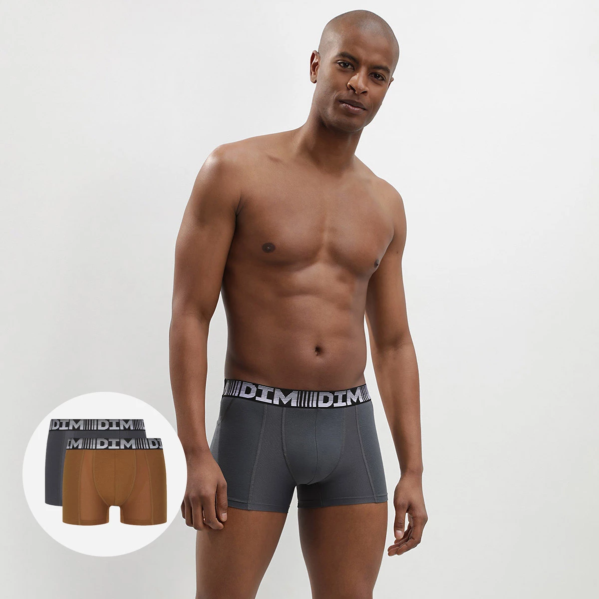 Le lot de 2 sous-vêtements homme Marron et Gris 3D Flex Air au design anti-humidité est le must have branché et performant du dressing de l’homme moderne !