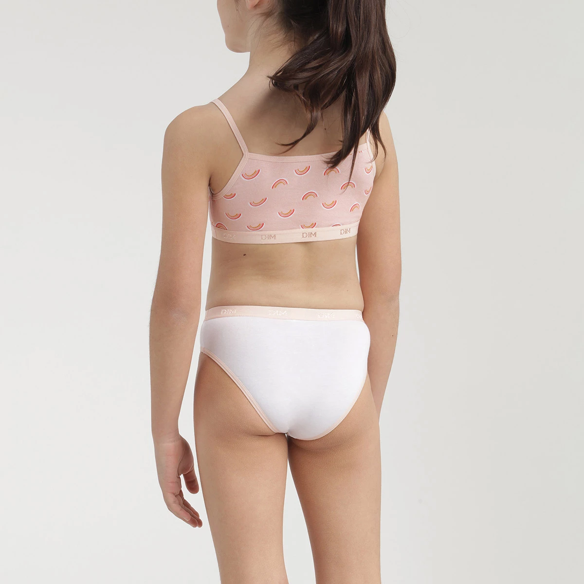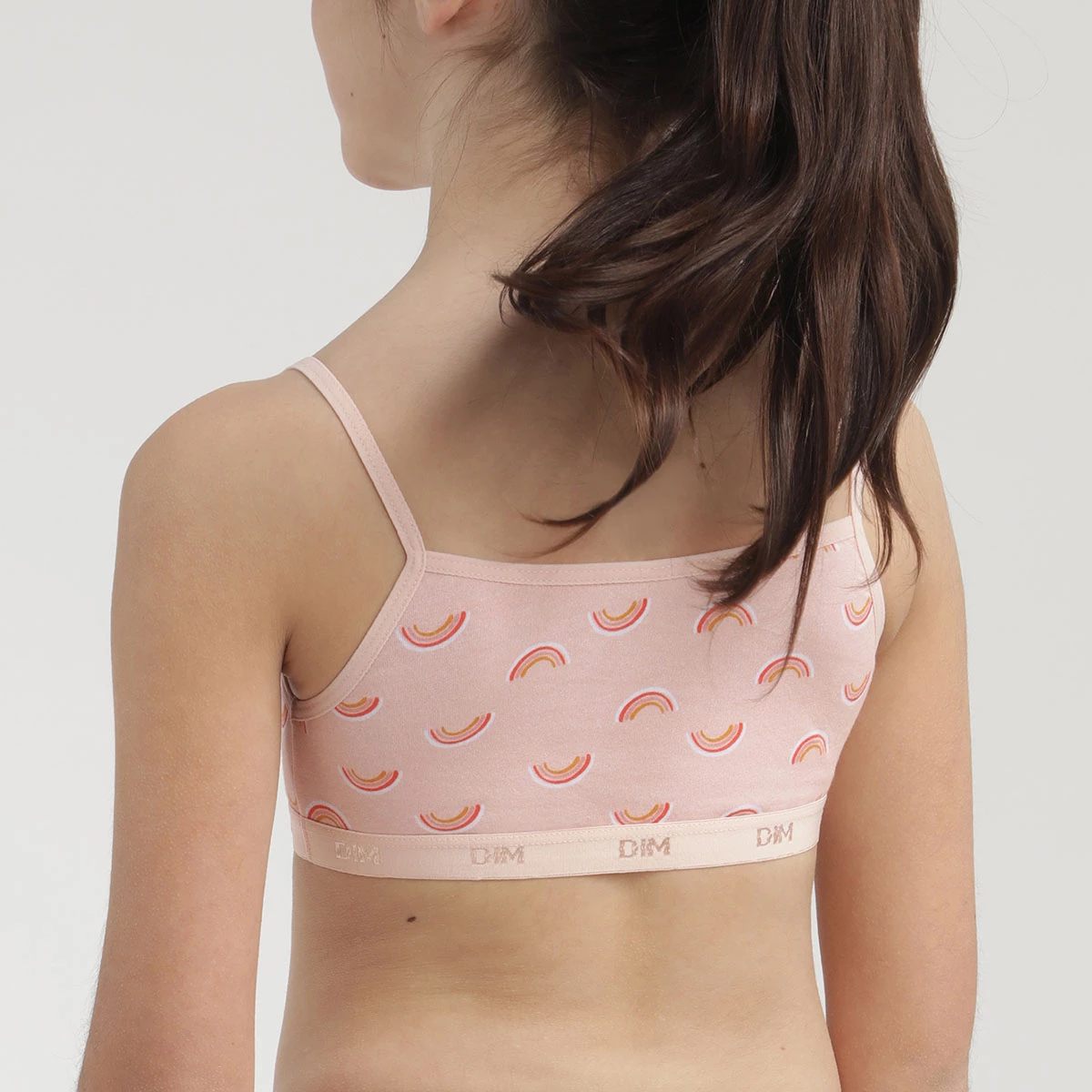 D’un côté, votre ado enfile une brassière fille Dim Pockets en coton stretch Vieux Rose aux coutures contrastées, de l’autre, elle glisse dans une brassière ado Rose Pastel ponctuée d’arcs-en-ciel colorés et d’un petit noeud rose à croquer. Fabriqué dans un coton stretch respirant et extensible, son pack de 2 Brassières Filles Les Pockets les accompagnent au quotidien avec confiance et aisance.