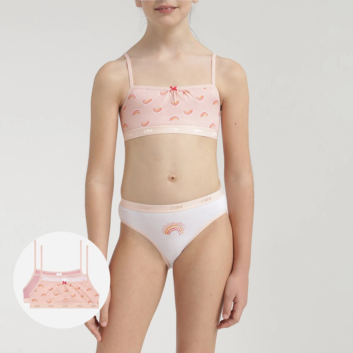 Confort et mignonnerie sont de la partie avec le lot de 2 brassières fille Les Pockets en coton stretch Rose orné d’un motif arc-en-ciel poétique !