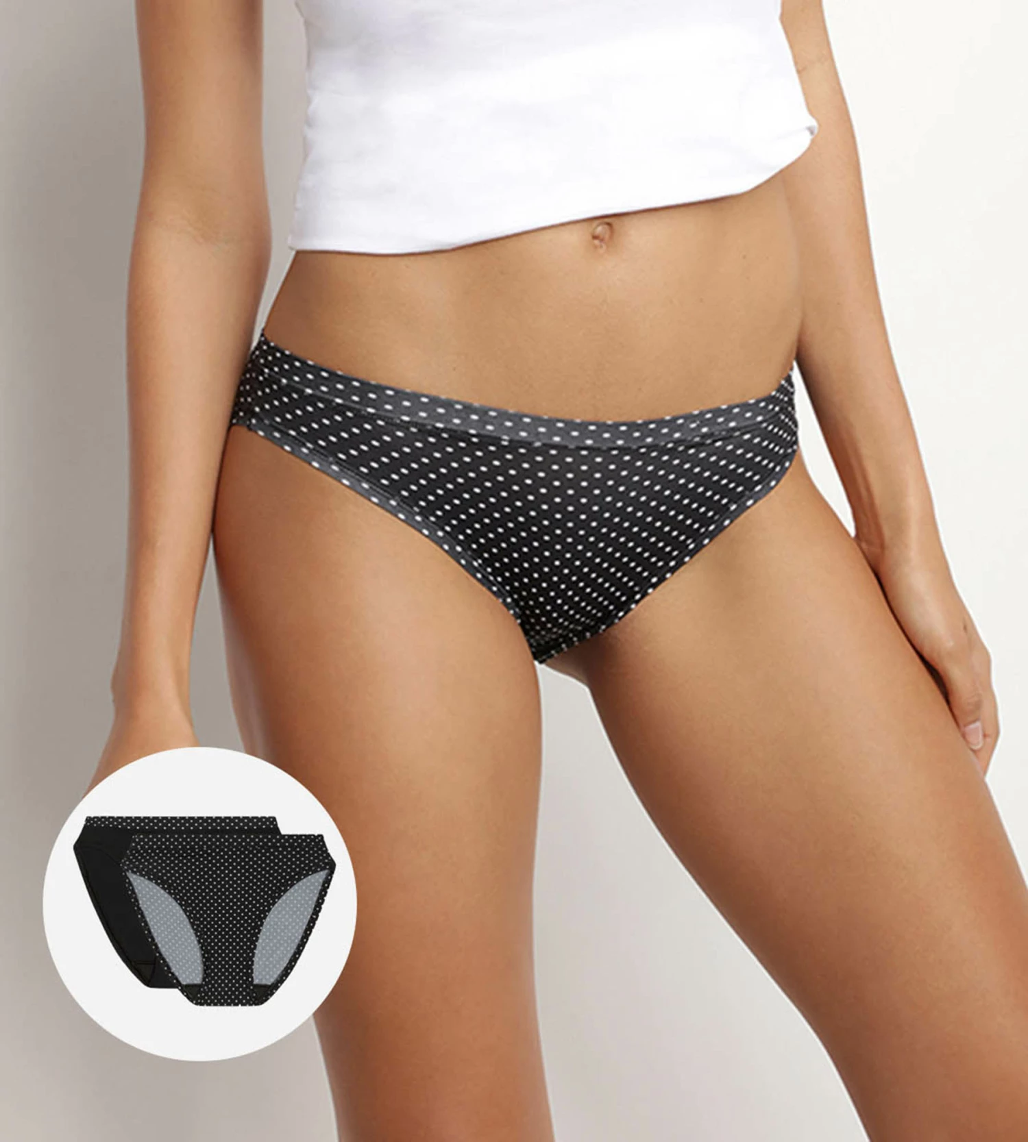 Libre de bouger avec votre lot de 2 culottes Noir Pois et Noir Body Mouv.