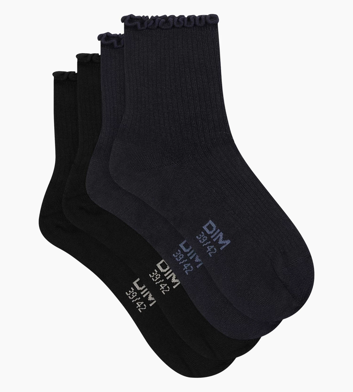 Le lot de 2 paires de chaussettes femme en coton lustré Dim Modal Noir et Bleu Marine aux finitions coquettes élève votre look avec sophistication !
