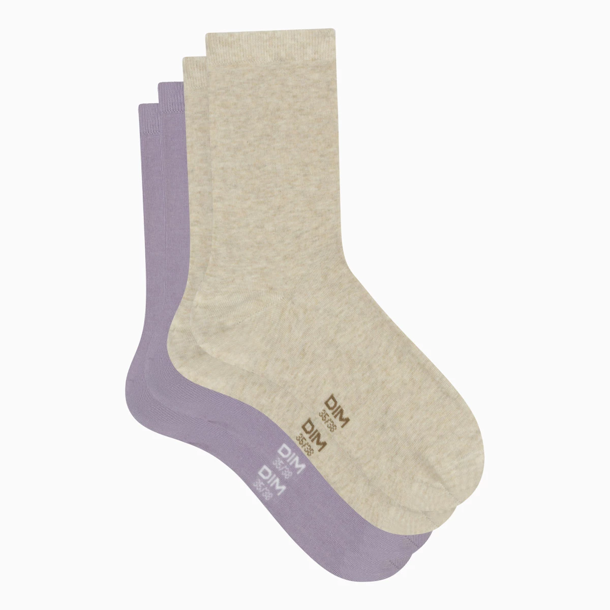 Faites le plein de coquetterie et de douceur avec le lot de 2 paires de chaussettes femme Basic Coton aux nuances Beige et Lavande !