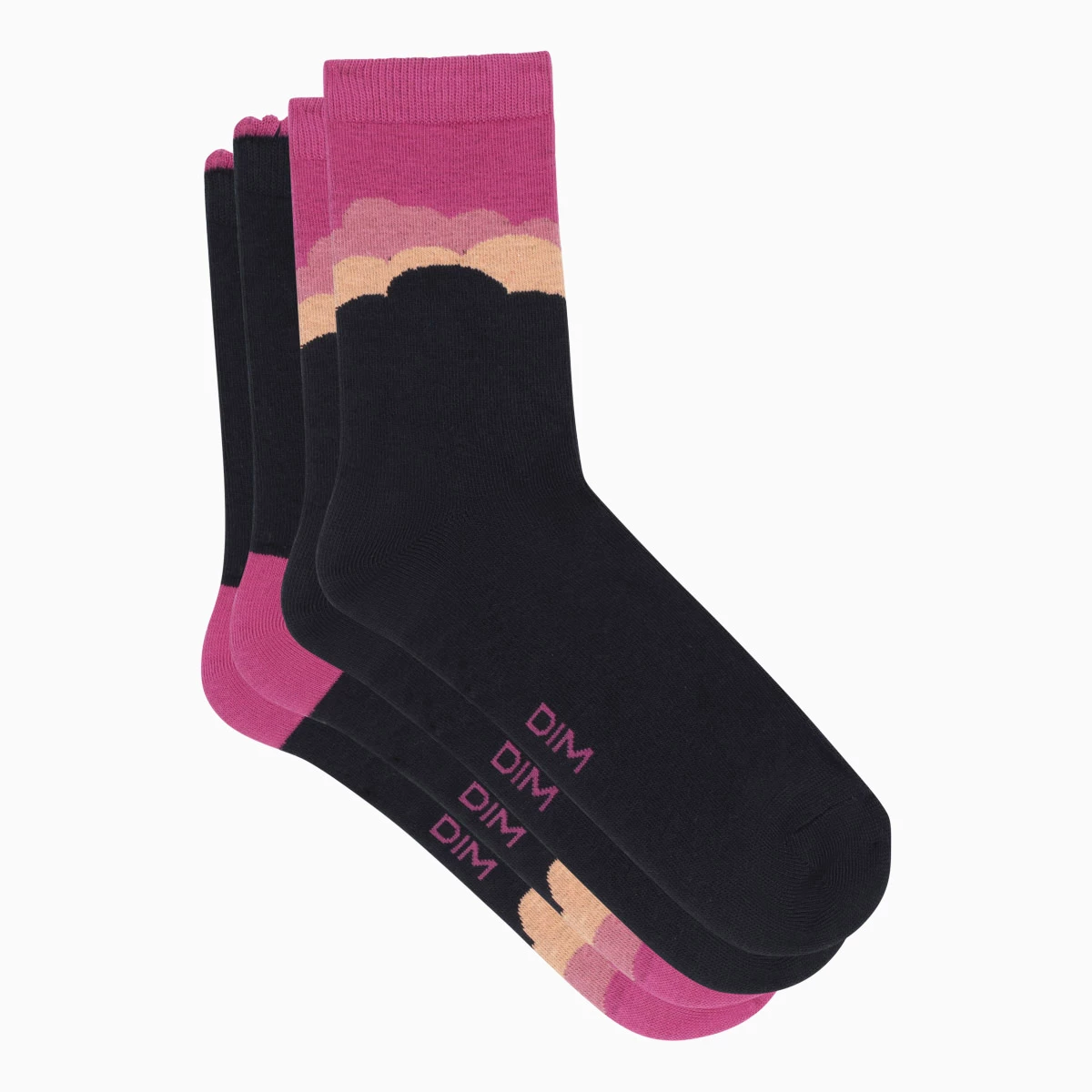 Mystique et féminin, le lot de 2 paires de chaussettes femme Coton Style Marine aux formes nuageuses Magenta est absolument captivant !