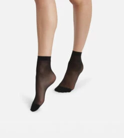 Parfaites sous un jean slim, avec des mocassins, ou sous un pantalon de tailleur foncé avec des escarpins, nos paires de chaussettes noires transparentes Ultra Resist s’intègrent sans fausse note à vos tenues ! Grâce à sa matière unique obtenue avec des fils doubles de Lycra elasthanne, vos Socquettes Femme supportent les frottements, les déformations et ne filent pas au premier regard !