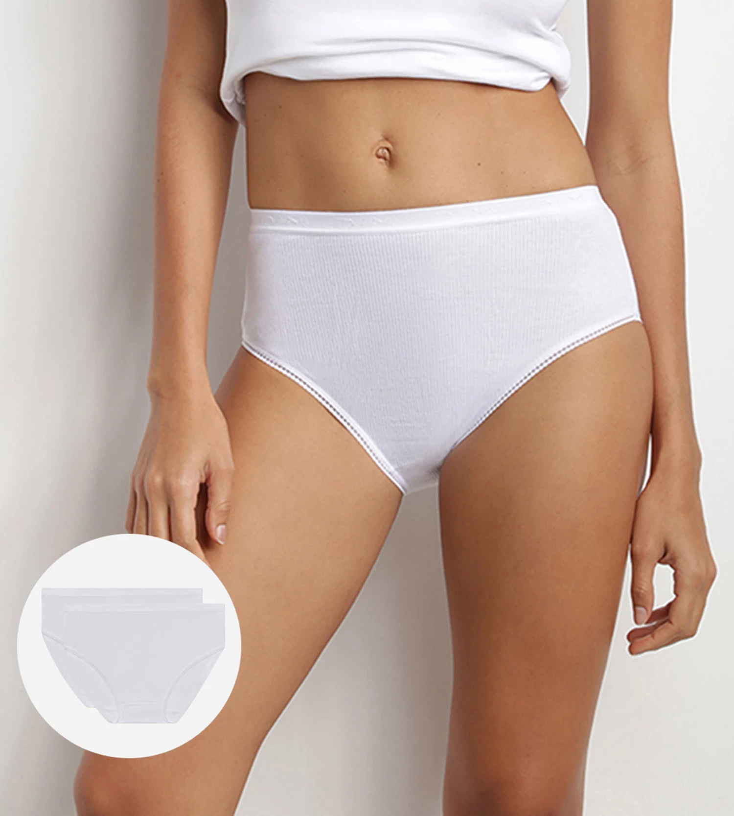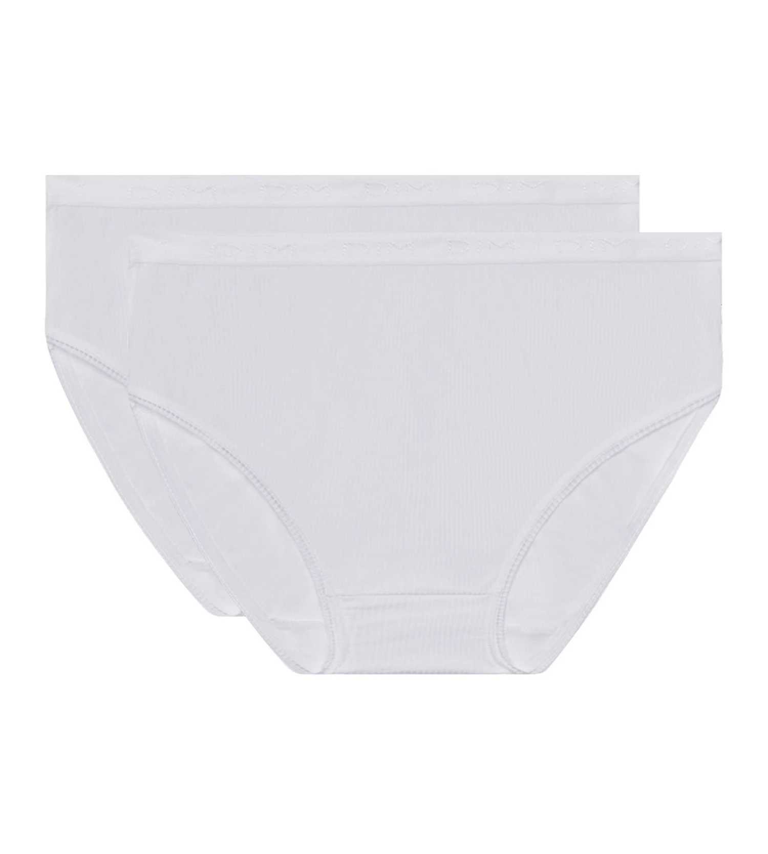 Lot de 2 slips blancs taille haute 100% coton pour un porter quotidien.