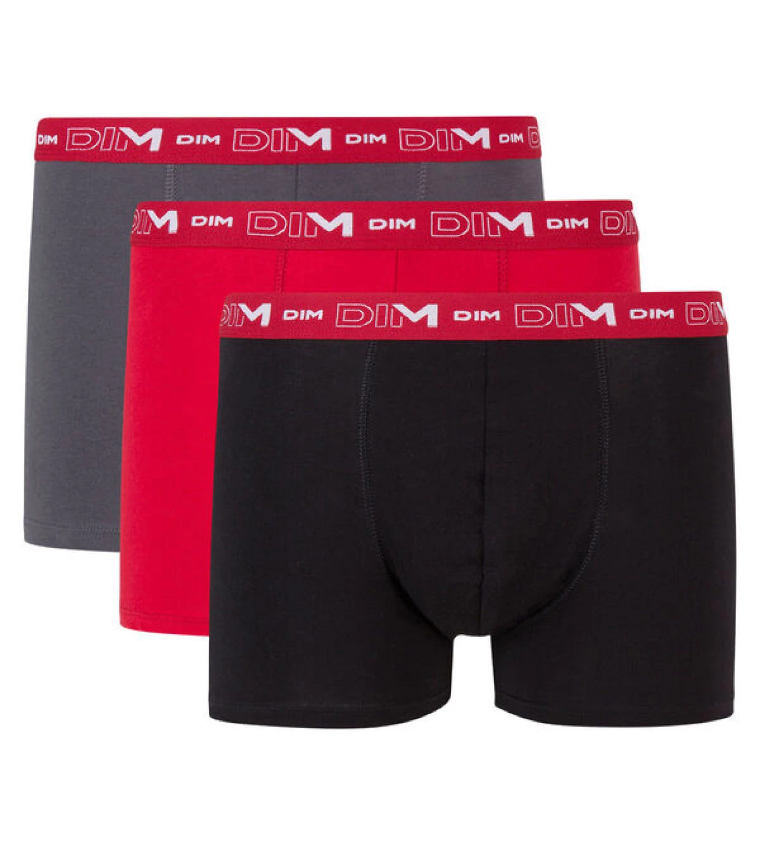 Mettez-vous aux couleurs de la saison avec ce lot de 3 boxers en coton stretch gris plomb, rouge chili et noir.