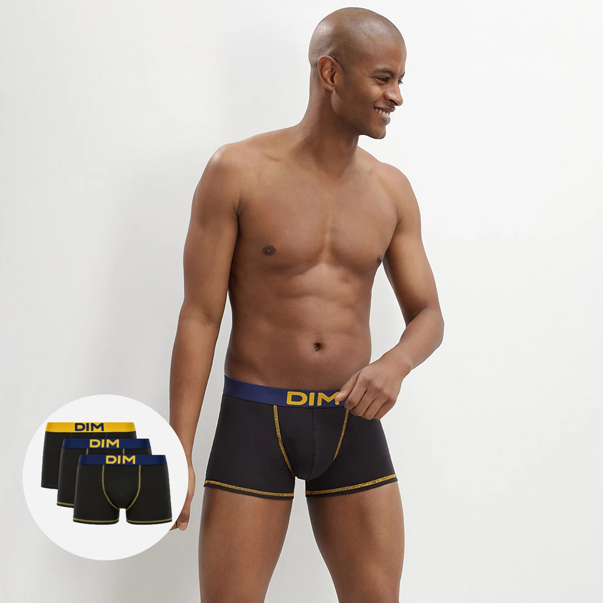 Confortable et mode, le lot de 3 Boxers Noir-Bleu Marin et Noir-Jaune Safran nous sauve la mise.