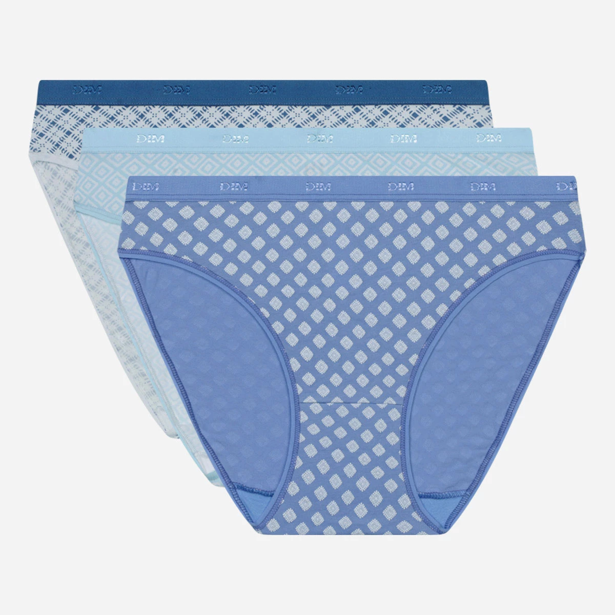 Cette saison, notre collection Dim Pockets se décline dans les tonalités bleues avec motifs géométriques pour un style batik chic ! Dotés de finitions élastiques invisibles, et construit avec un coton stretch douillet recouvert de formes Turquoises, Marine ou Bleu Lagon, vos Sous-vêtements Coton rythment vos journées avec style !