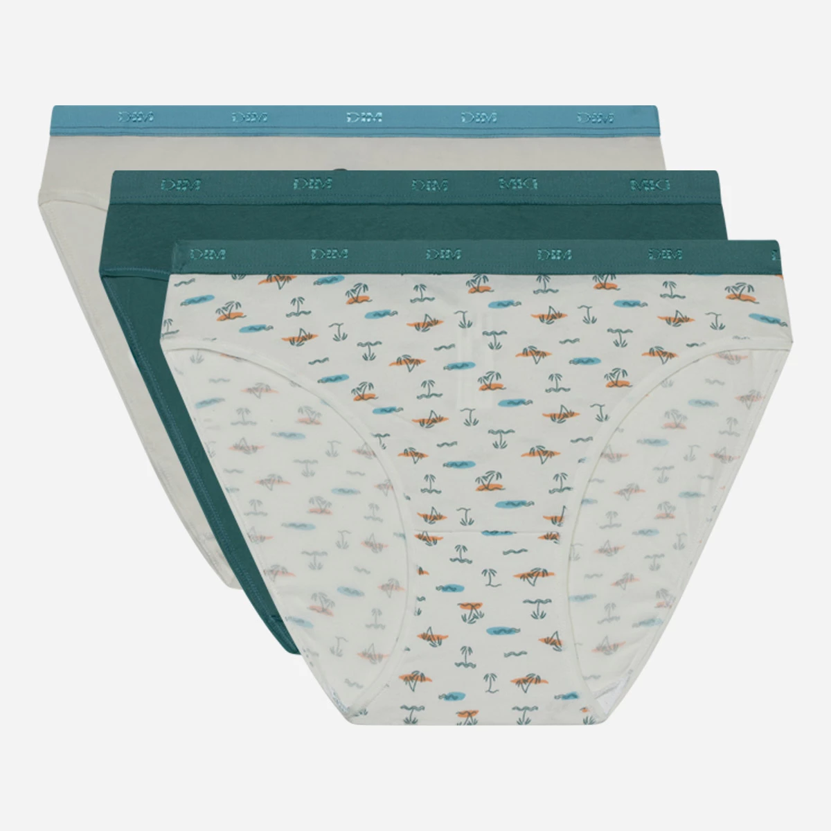 Mode Été enclenché avec le lot de 3 slips femme en coton stretch Sable Les Pockets aux imprimés balnéaires 100% détente !