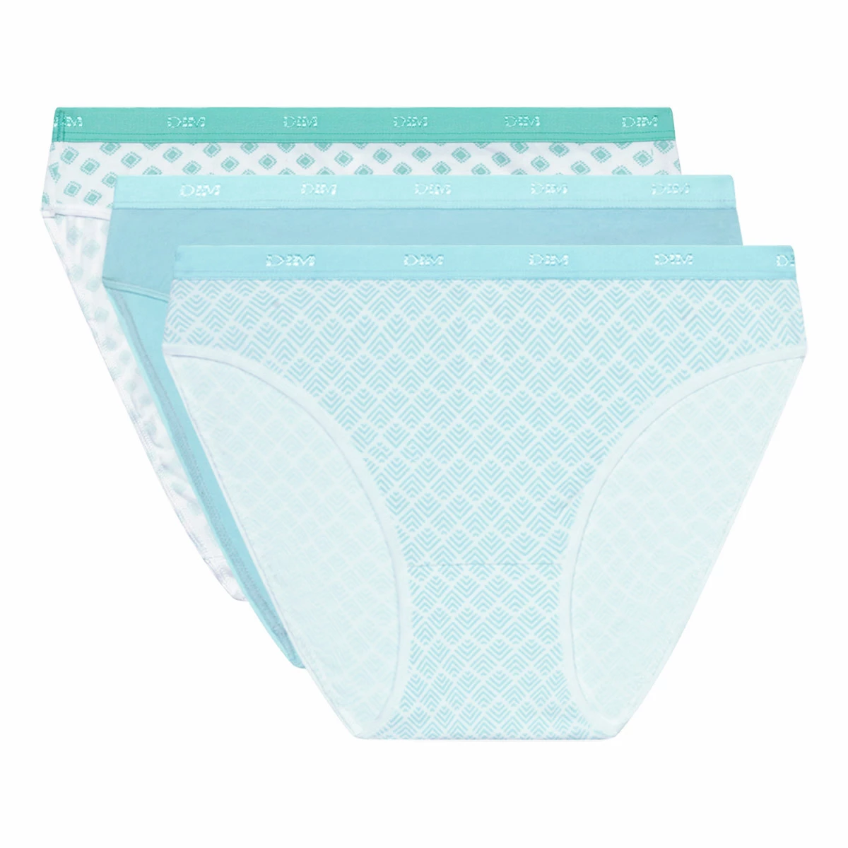 Cap vers les plages de sable blanc avec ce lot de 3 slips femme en coton stretch Les Pockets au nuancier Turquoise paradisiaque et aux motifs géométriques captivants !