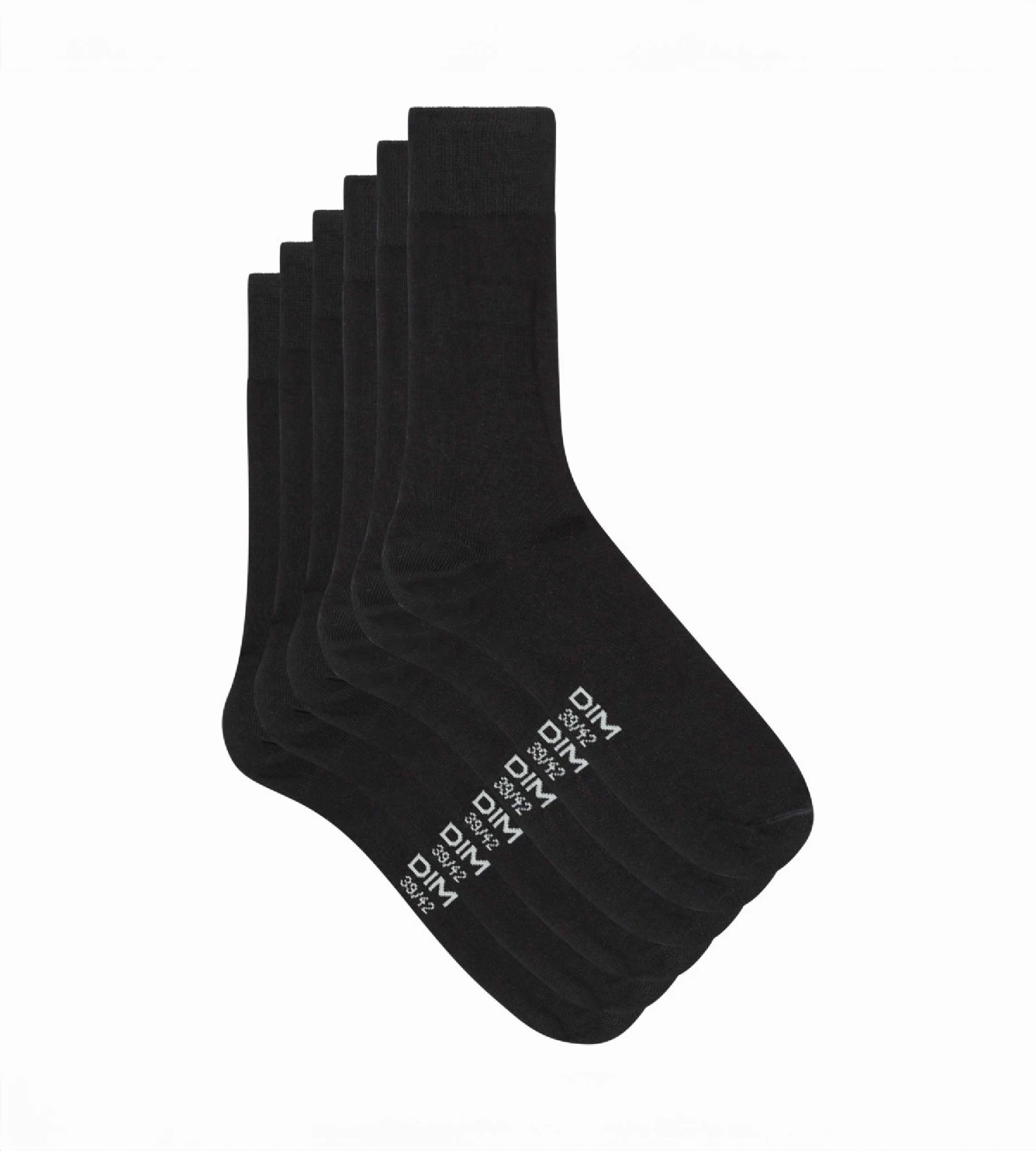 Tissé avec des fibres de coton peigné plus résistant et douillet, et doté d’un bord-côte large très extensible, votre lot de 3 paires de Chaussettes noires Dim Basic Coton est un incontournable de votre tiroir à lingerie, pour finaliser vos tenues avec sobriété et élégance.