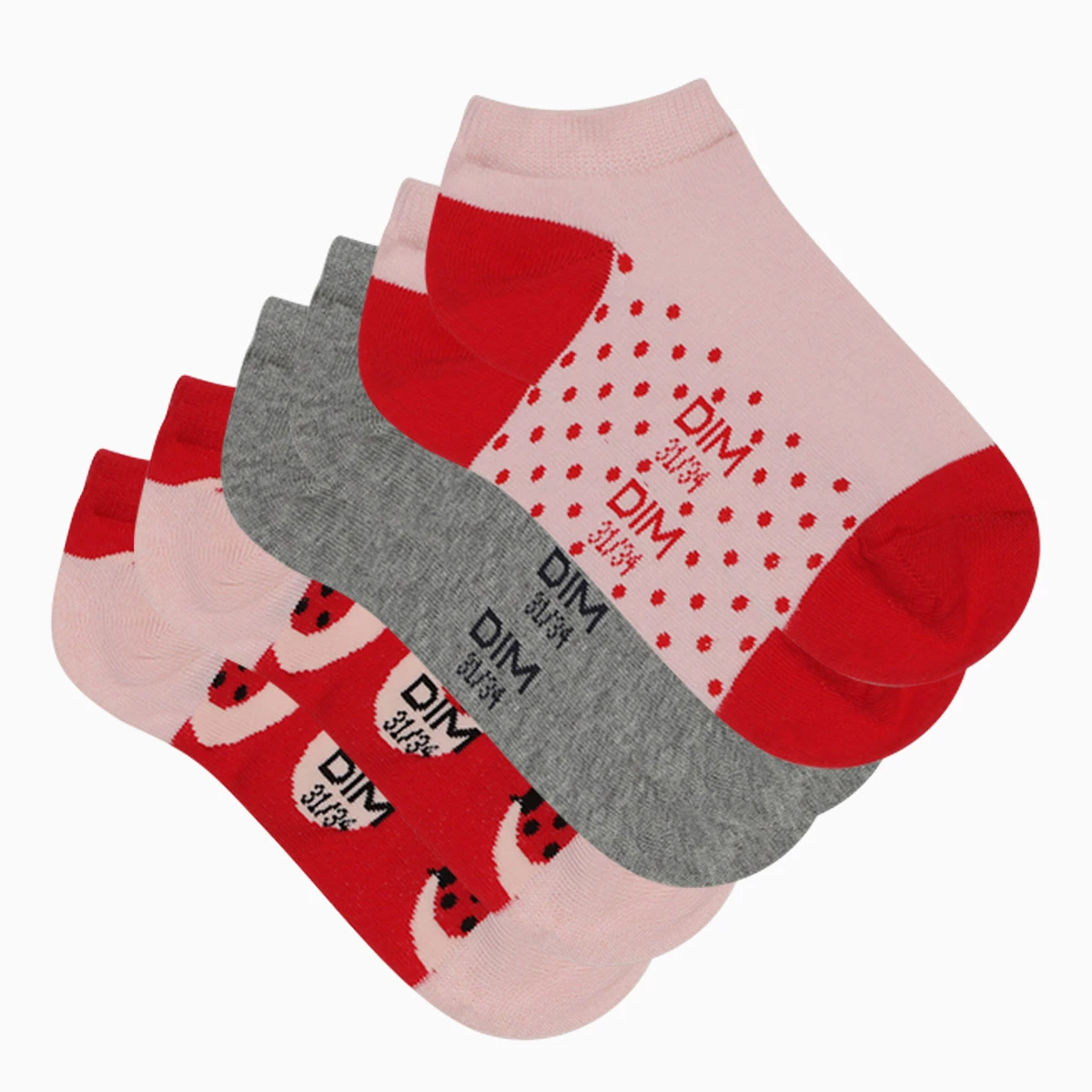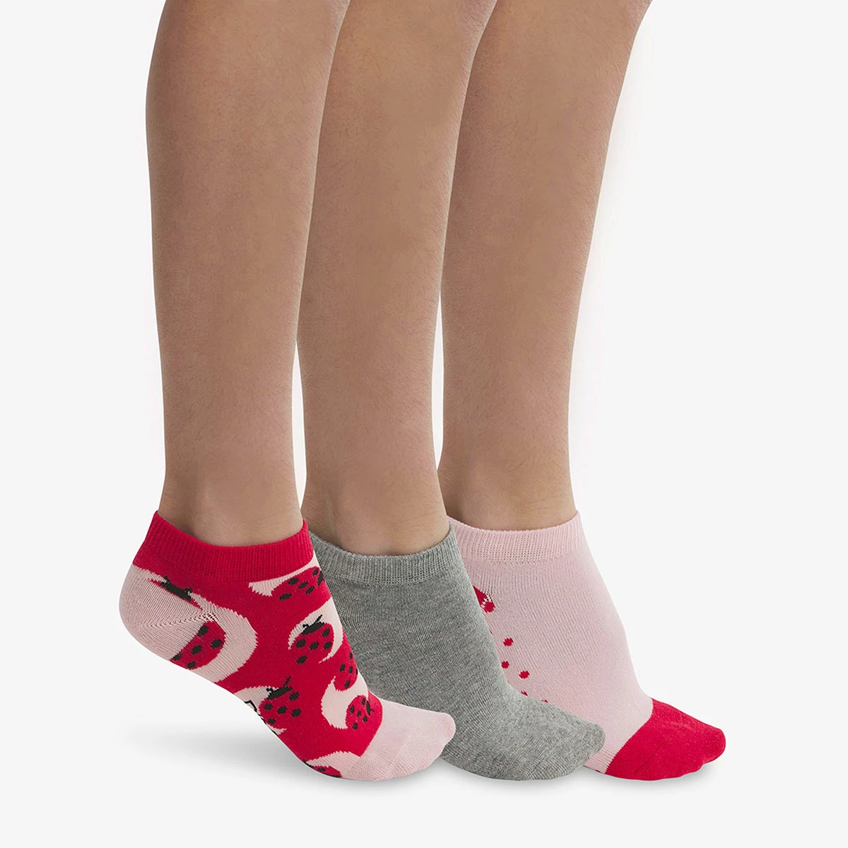 Fun et coloré, le lot de 3 paires de socquettes enfant Coton Style Rouge recouvert de Coccinelles lui donne un côté mignon et coquet !