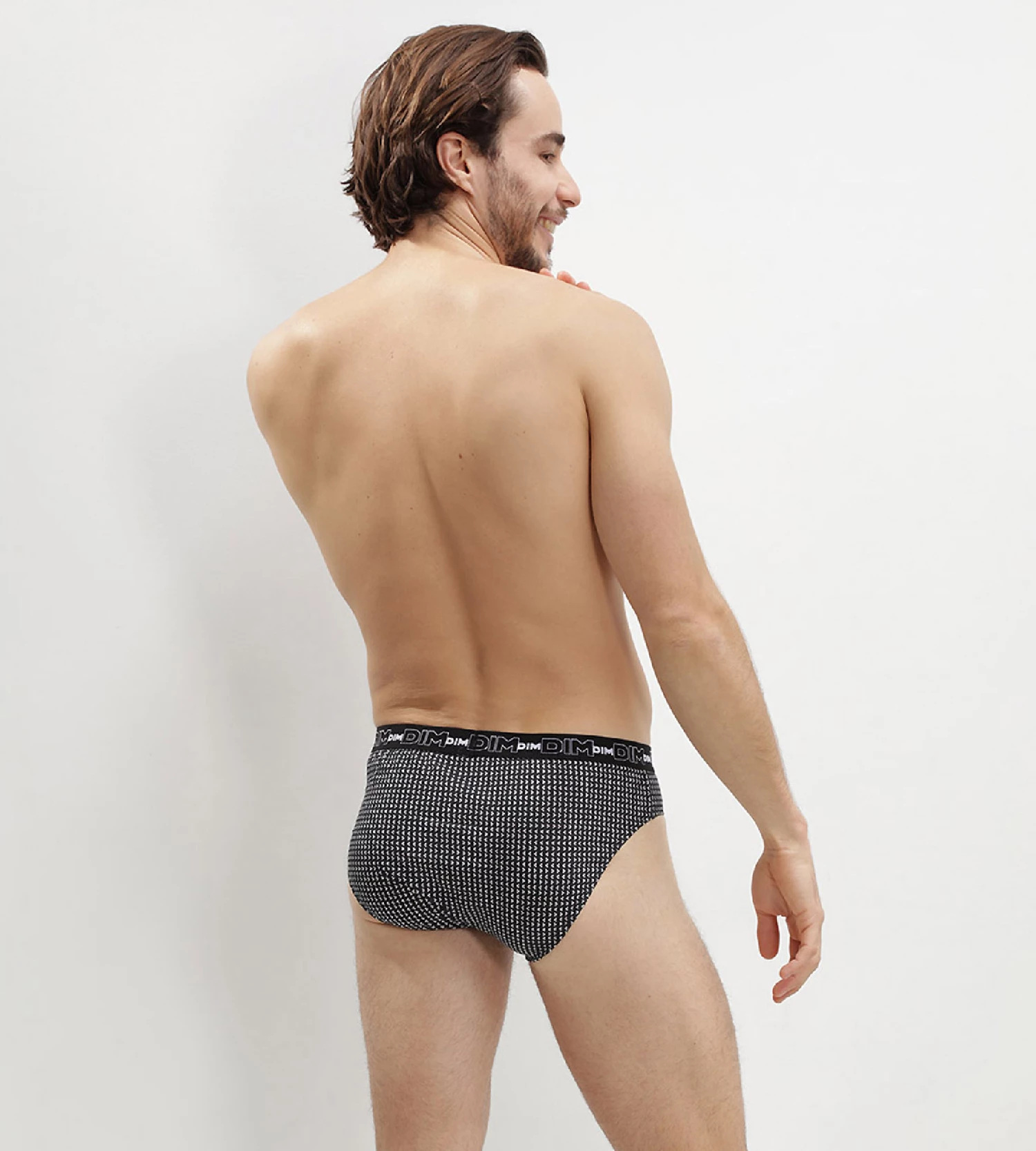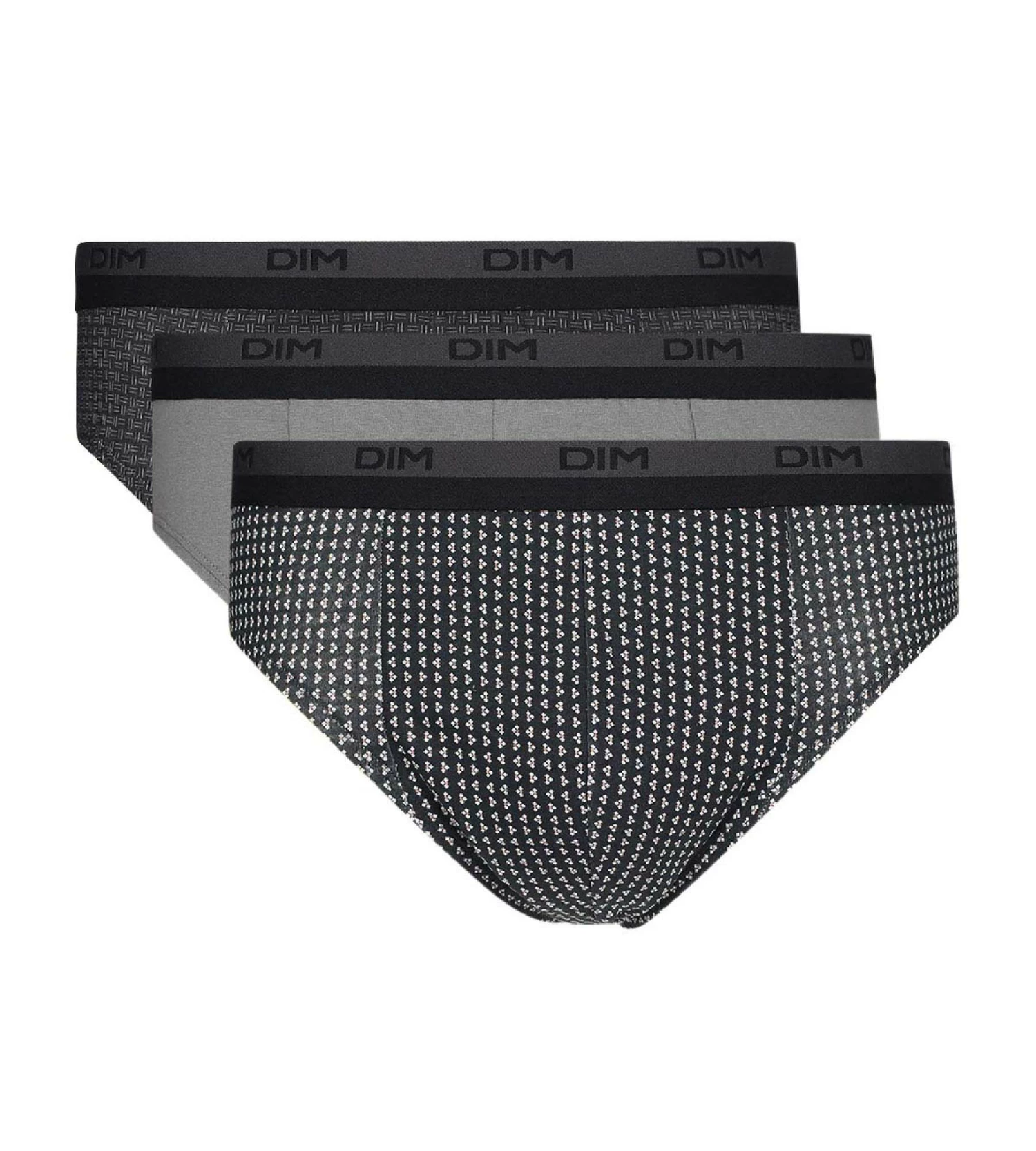 Craquez pour le style fantaisie de ce lot de 3 slips homme 100% coton Dim Coton Print Gris aux motifs cubiques très graphiques !