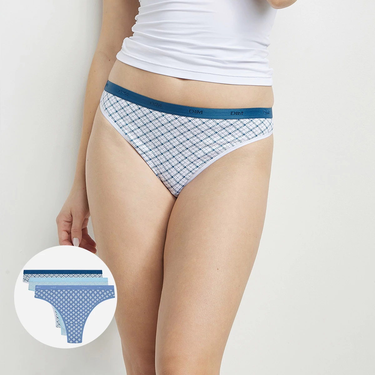 Avec ses illustrations dynamiques en forme de losanges, carreaux, cubes, et son nuancier de Bleu qui invite à la rêverie, votre lot de 3 Sous-vêtements Coton stretch Dim Pockets revisite le style ethnique bohème avec fraîcheur et modernité ! Grâce à sa forme discrète aux finitions élastiques, votre string femme se glisse sous vos bas sans fausse note.