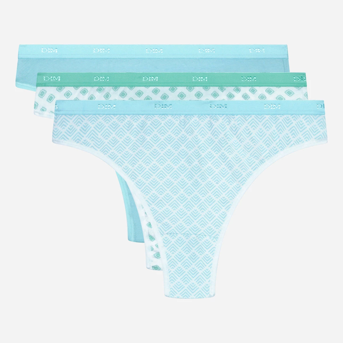 Adoptez le style ethnique bohème avec notre lot de 3 strings en coton stretch Les Pockets aux motifs abstraits et nuancier Turquoise apaisant.