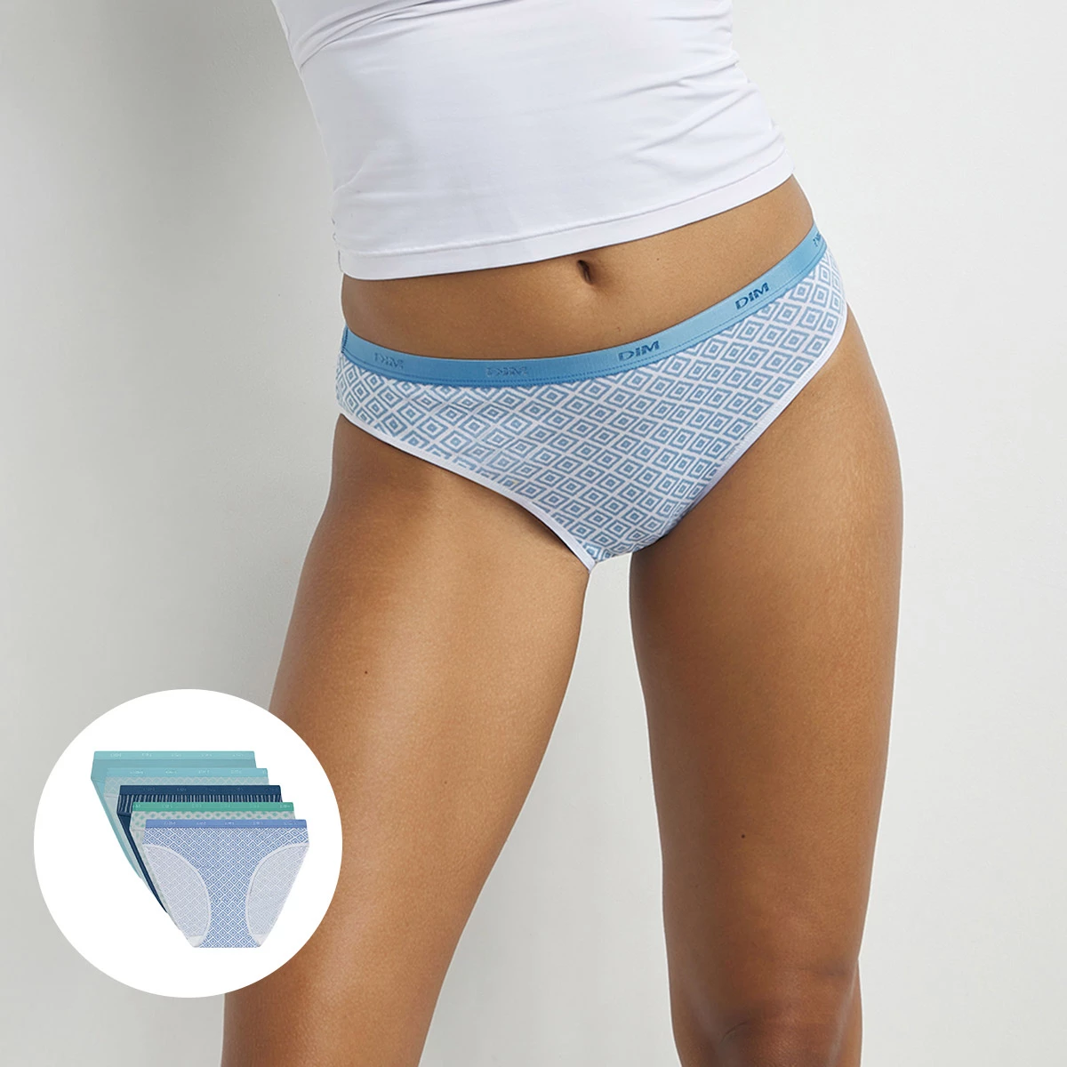 Adoptez la tendance Batik avec ce lot de 5 culottes en coton stretch Les Pockets aux nuances bleues et motifs géométriques, très ethnique-chic !