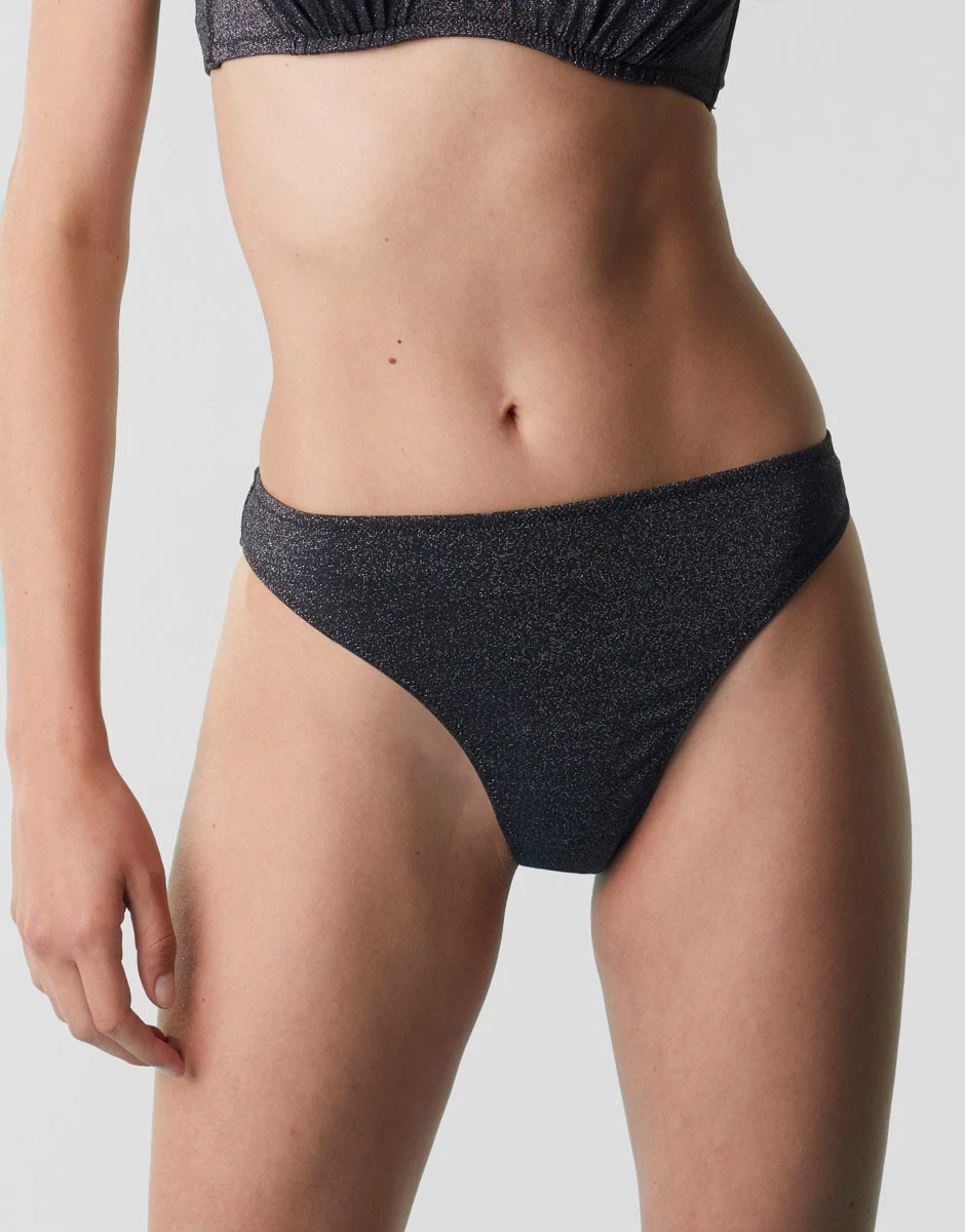 Le noir scintille grâce à l’effet lurex qui illumine votre look de plage. Cette partie inférieure de bikini en microfibre est caractérisée par la présence de fil lurex à l’intérieur de la structure pour assurer un résultat lumineux et confortable.