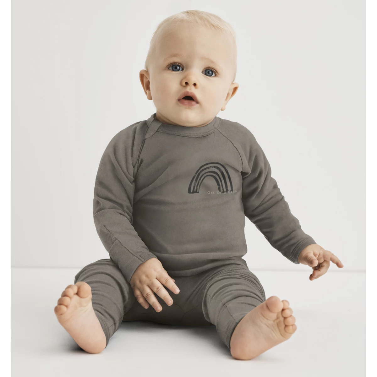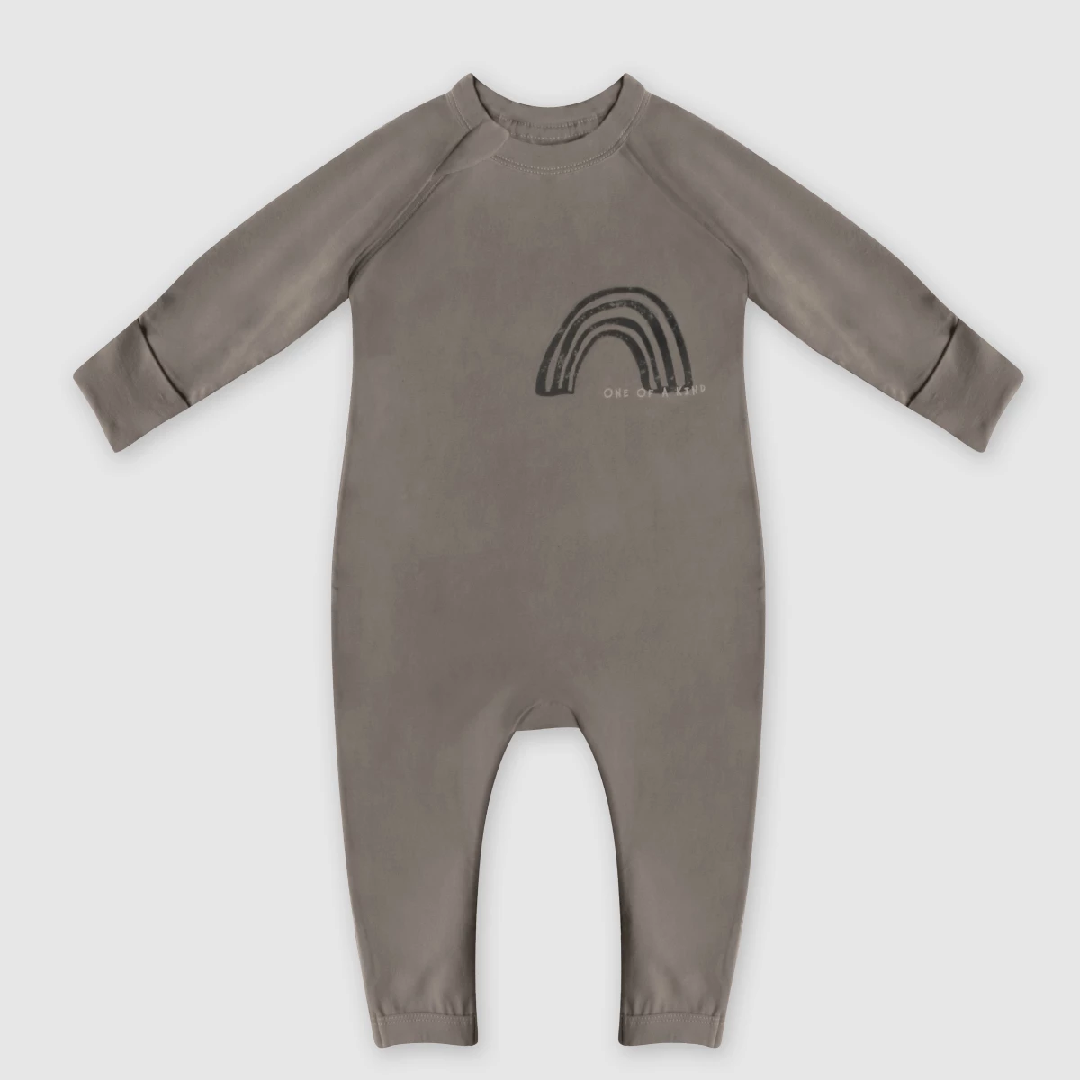 Facilitez-vous la vie avec le pyjama bébé zippé en coton bio kaki imprimé rainbow cœur Dim ZIPPY ® !