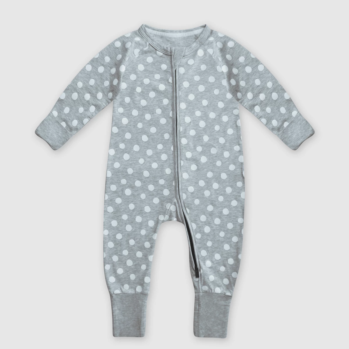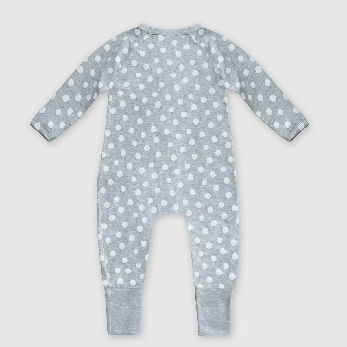 Changez bébé plus facilement le pyjama bébé zippé en coton stretch gris imprimé pois blanc Dim ZIPPY ® !