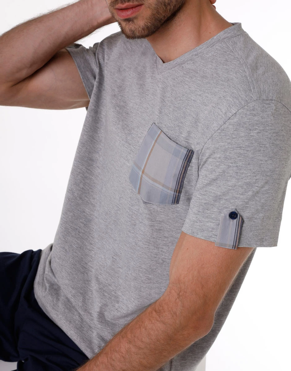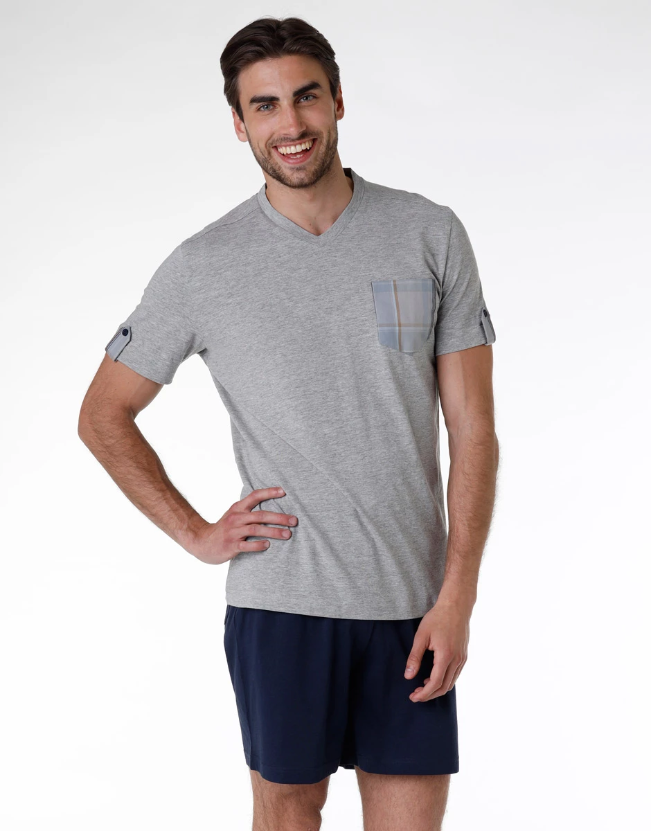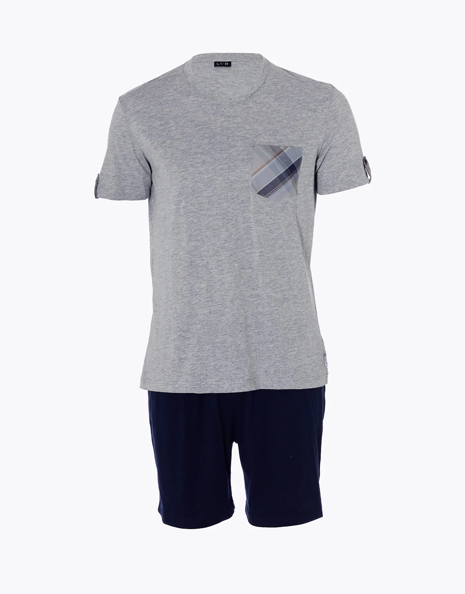 Ce pyjama se compose d’un t-shirt à demi-manches avec une encolure en V côtelée. Le pantalon court avec cordon de serrage en couleurs contrastées dans les tons bleus est doux et bien ajusté. Enfin, le tissu dans lequel il est confectionné, le jersey de coton, permet au modèle d’être à la fois extensible et frais. Un équilibre parfait entre confort et style. Il ne vous reste plus qu’à l’essayer, sachant que les tailles disponibles vont du S au XXL. En cas de doute, n’hésitez pas à consulter notre guide des tailles.