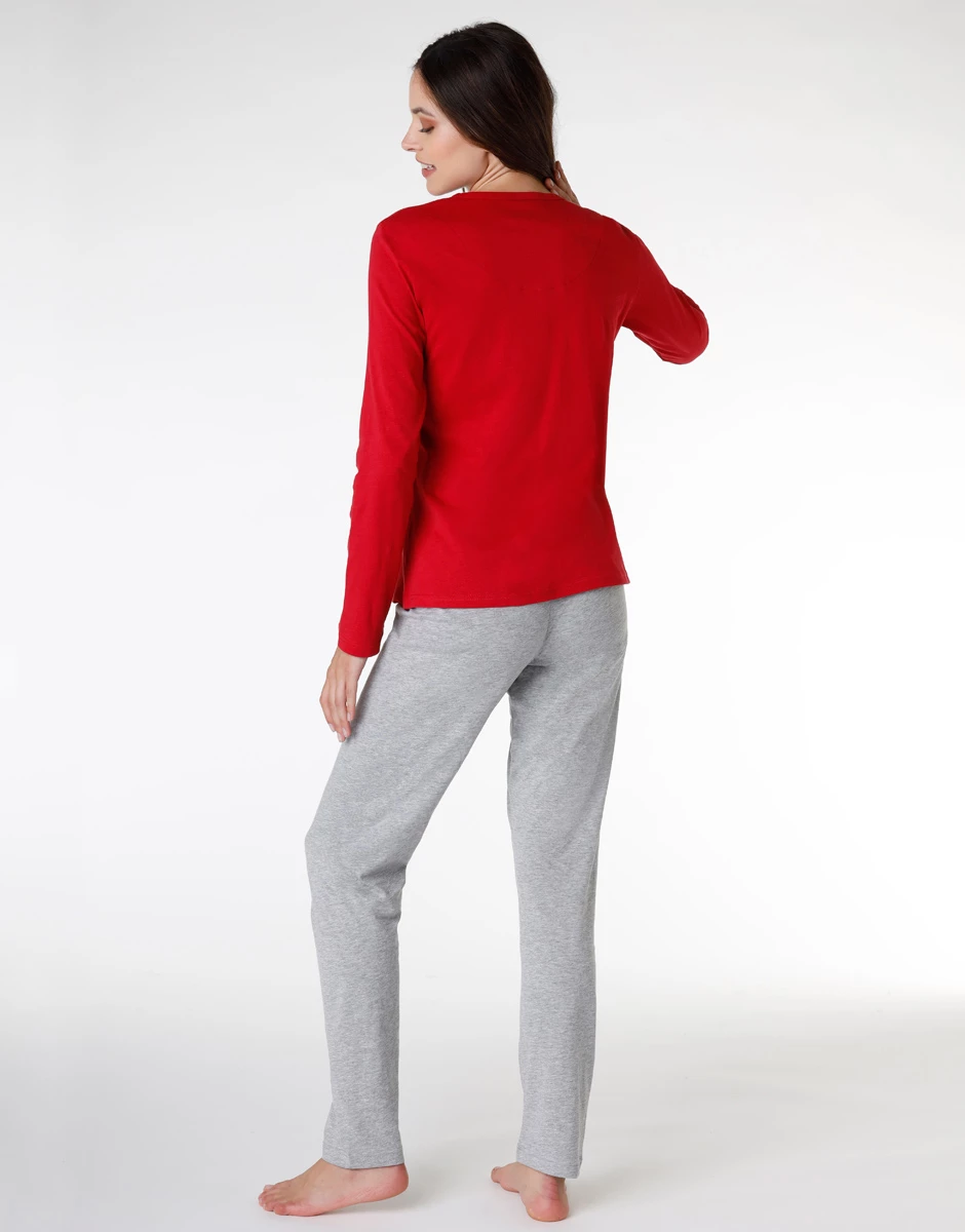 Pyjama Ă manches longues et pantalon long en coton jersey, qui le rend extrĂŞmement doux, lĂ©ger et pratique pour un port confortable. La tunique est de couleur bleue unie caractĂ©risĂ©e par un imprimĂ© pailletĂ© placĂ©. Le pantalon est d’un classique gris avec des bas de jambes sans revers. Disponible dans les tailles S Ă XXL. Pour tout doute concernant le choix de la taille, nous vous suggĂ©rons de consulter notre guide.