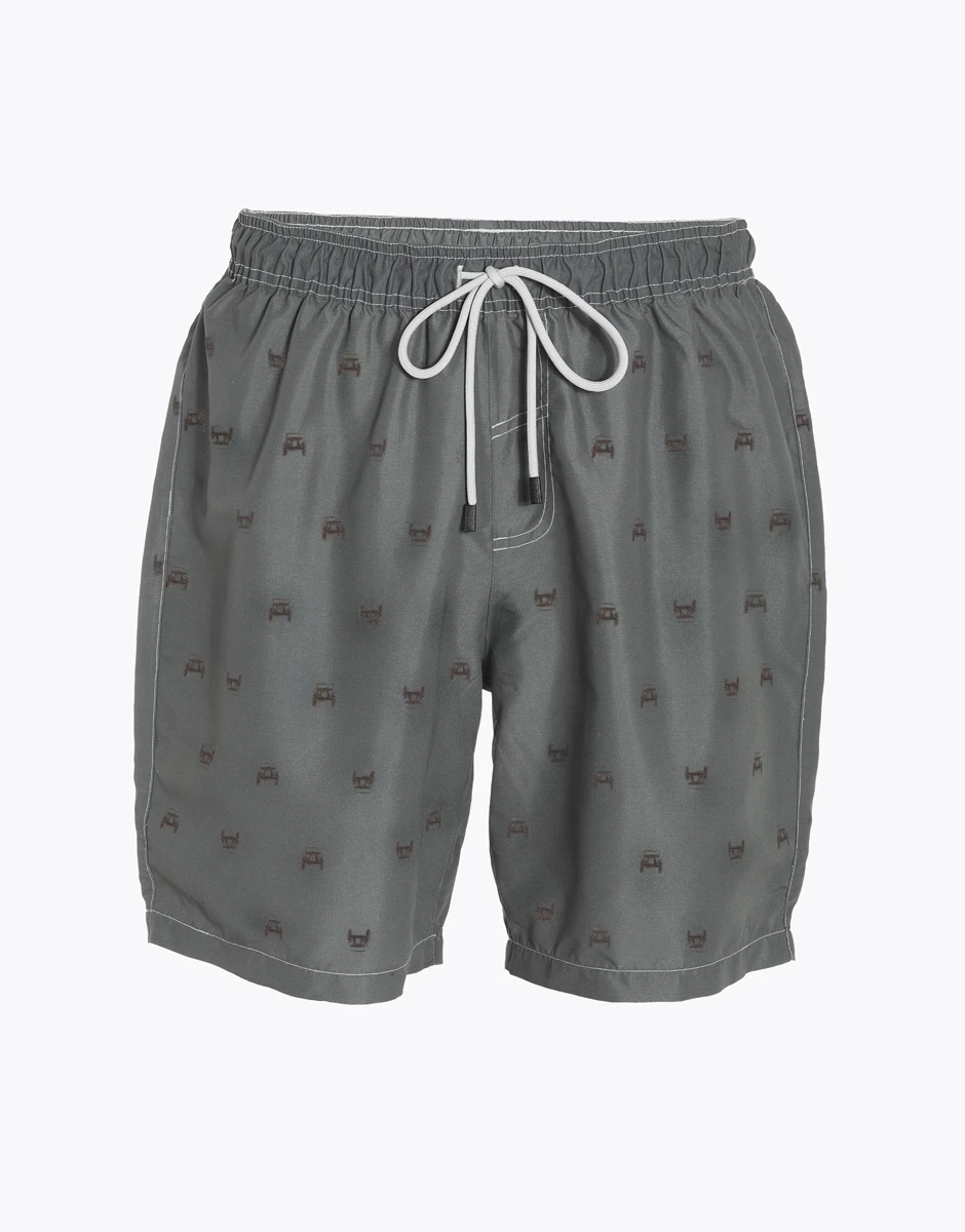 Ce short de bain sera votre allié pour cet été, à la page ou à la piscine ! Moderne, avec sa coupe droite et son cordon contrasté, l’imprimé voiture lui apporte une touche vintage très à la mode !
