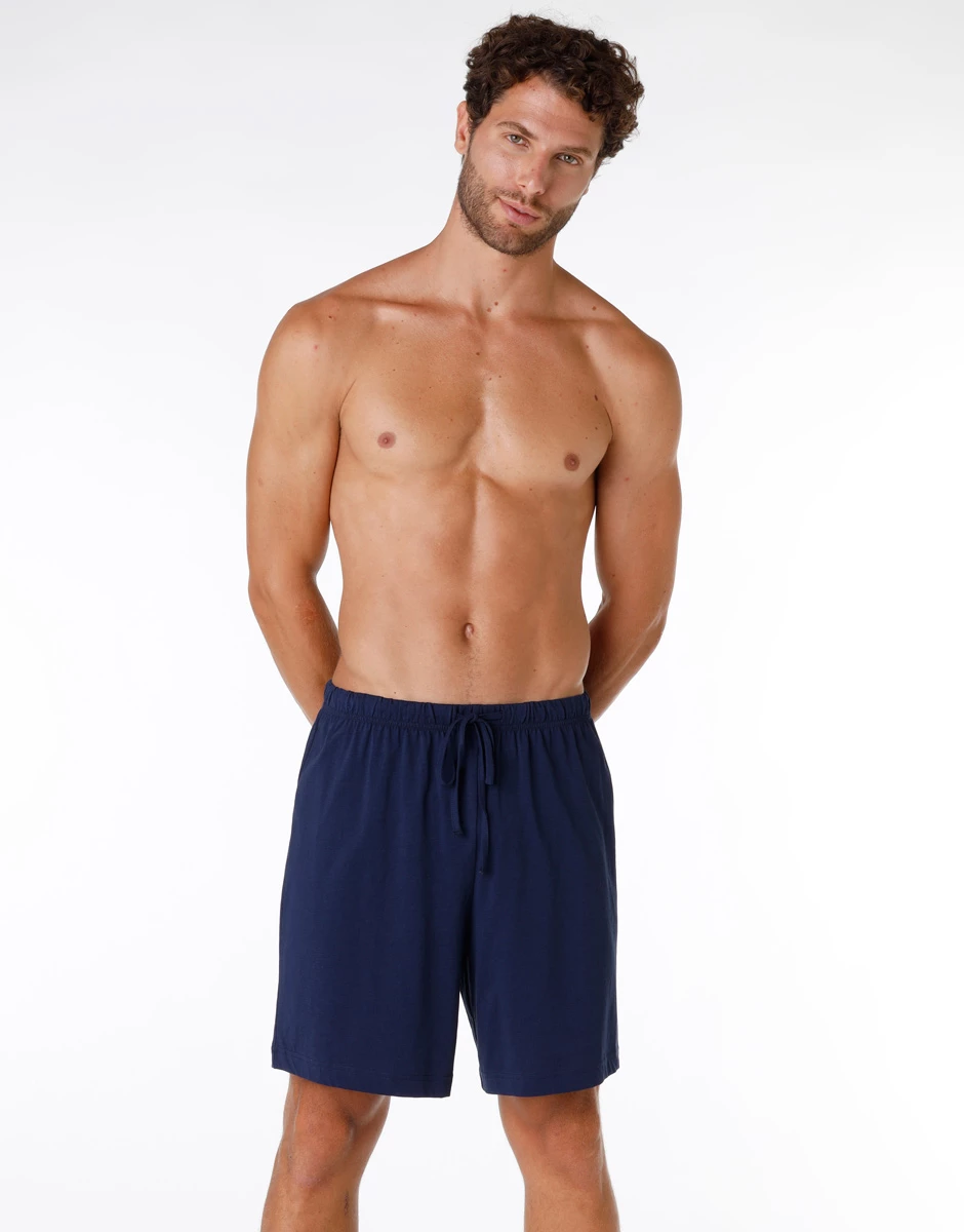 Short de pyjama homme en jersey 100% coton, bleu marine