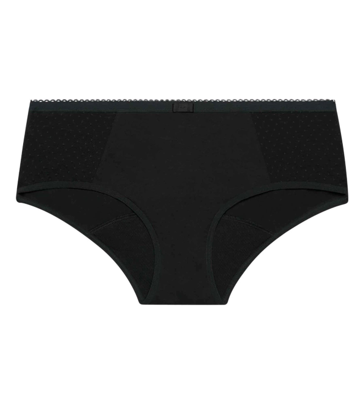 Vous vous sentez glamour et à l’aise même pendant vos règles avec le shorty menstruel Dim Protect Flux Abondants en coton bio et plumetis coquets !