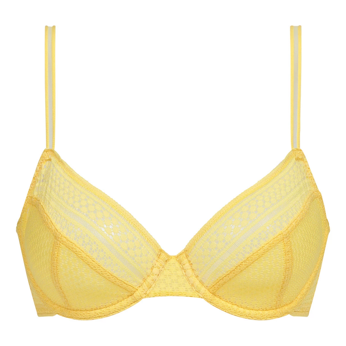 Égayez votre journée grâce à notre soutien-gorge corbeille avec armatures Chic Summer en dentelle graphique Bouton d’Or, très solaire !