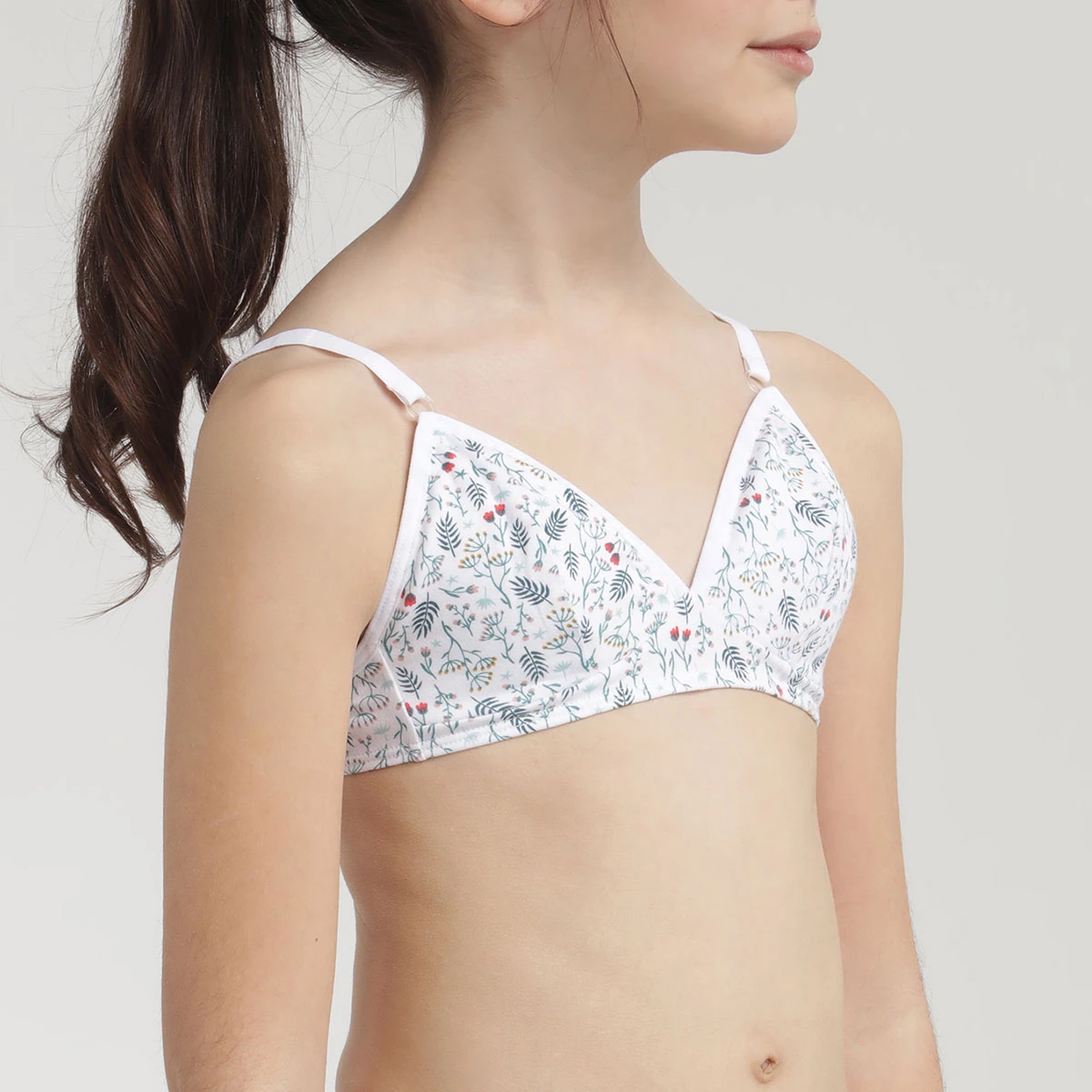 Son look est romantique à souhait avec le soutien-gorge fille sans armatures et à bonnets amovibles Les Pockets, en coton stretch Blanc et imprimé liberty !