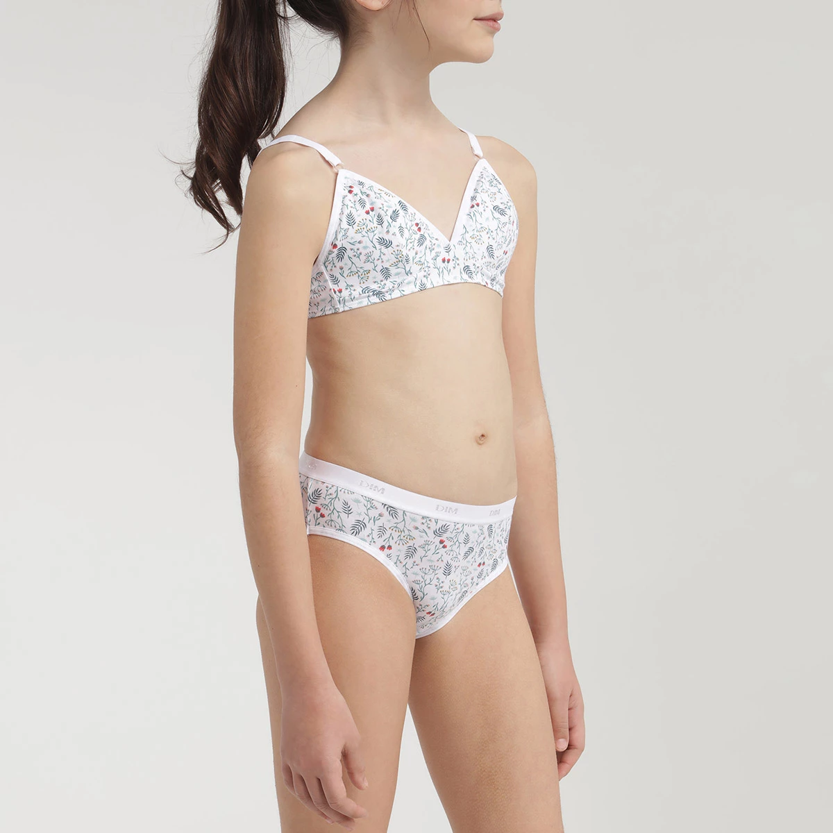 Votre ado fait un saut en pleine nature avec ce soutien-gorge coton sans armatures Les Pockets recouvert de petites feuilles, fleurs et autres éléments champêtres ! Particulièrement adapté en premier soutien-gorge, ce modèle sans armatures, doté de mousses amovibles, lui permet de choisir l’intensité de son maintien et l’aspect de son décolleté, pour être parfaitement à l’aise.