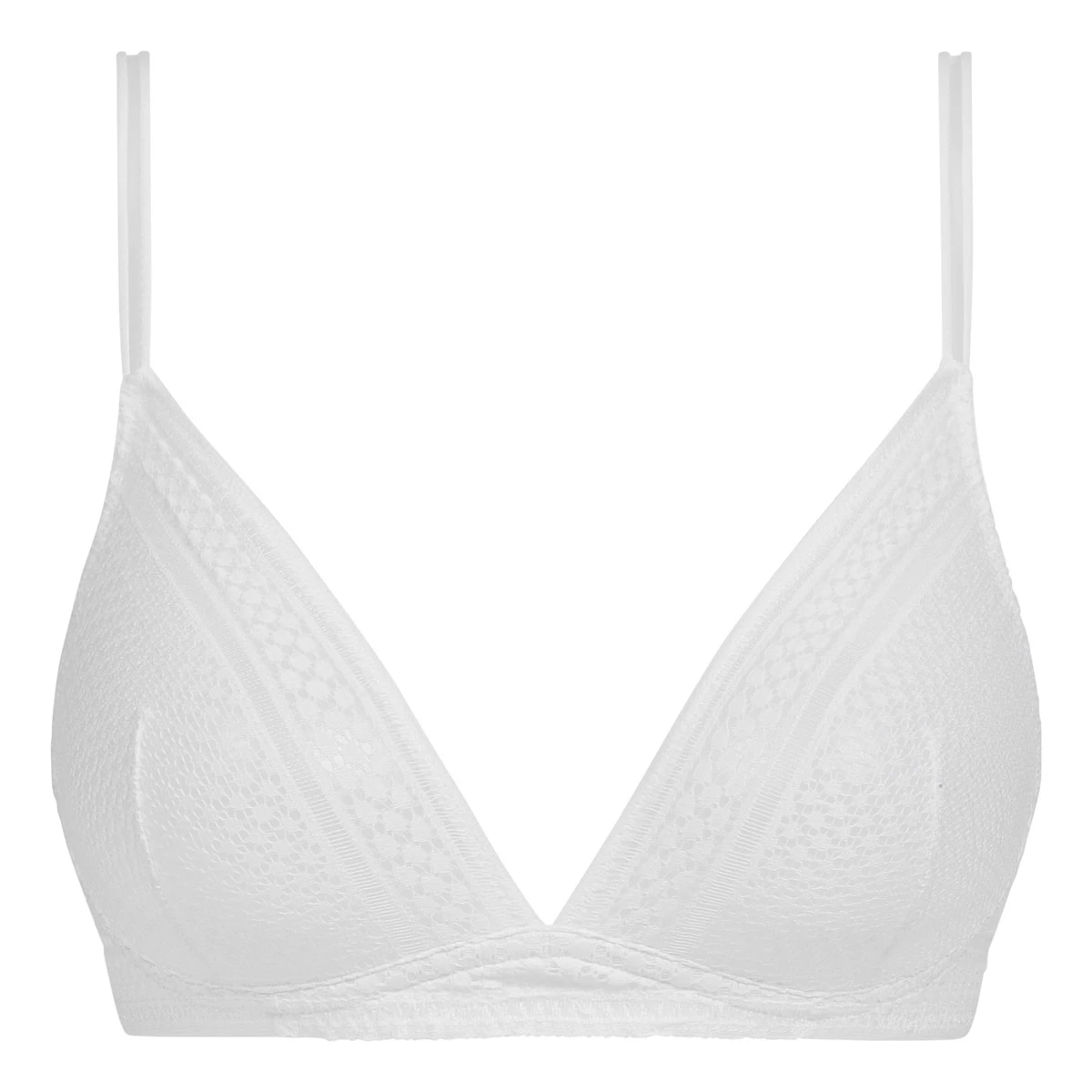 Craquez pour l’allure faussement sage de notre soutien-gorge triangle avec armatures Chic Summer, aux bonnets souples en dentelle blanche, un brin révélateur !