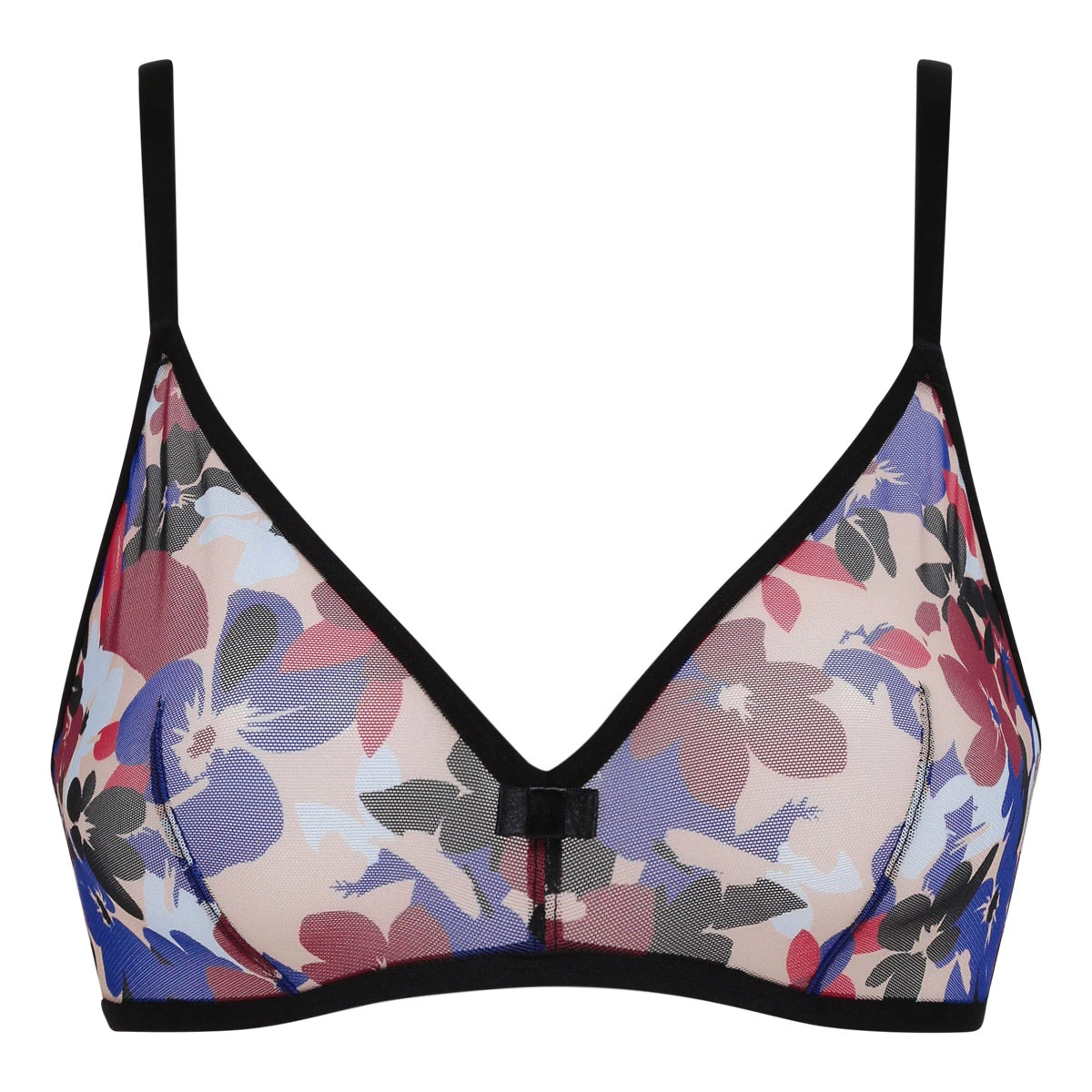 Affichez une allure sensuelle et mystérieuse avec notre soutien-gorge triangle sans armatures Flower Transparency, en tulle à fleurs colorées, très couture !
